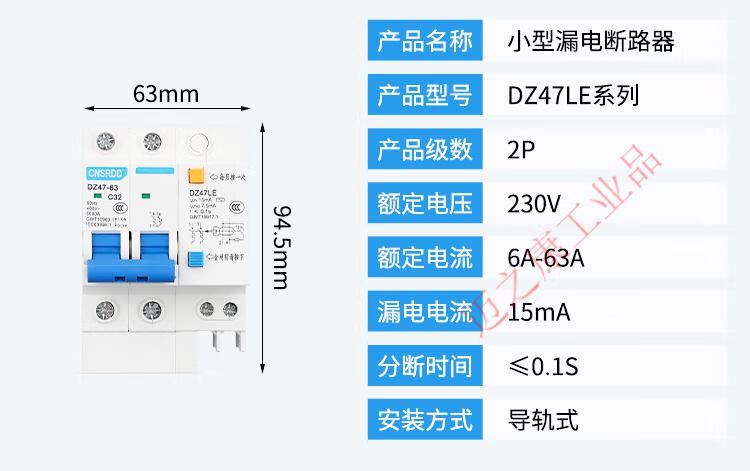 15ma leakage protector switch highly sensitive action current 15mA leakage protection DZ47LE2P16A32A3P action current 15MA 16A 2P
