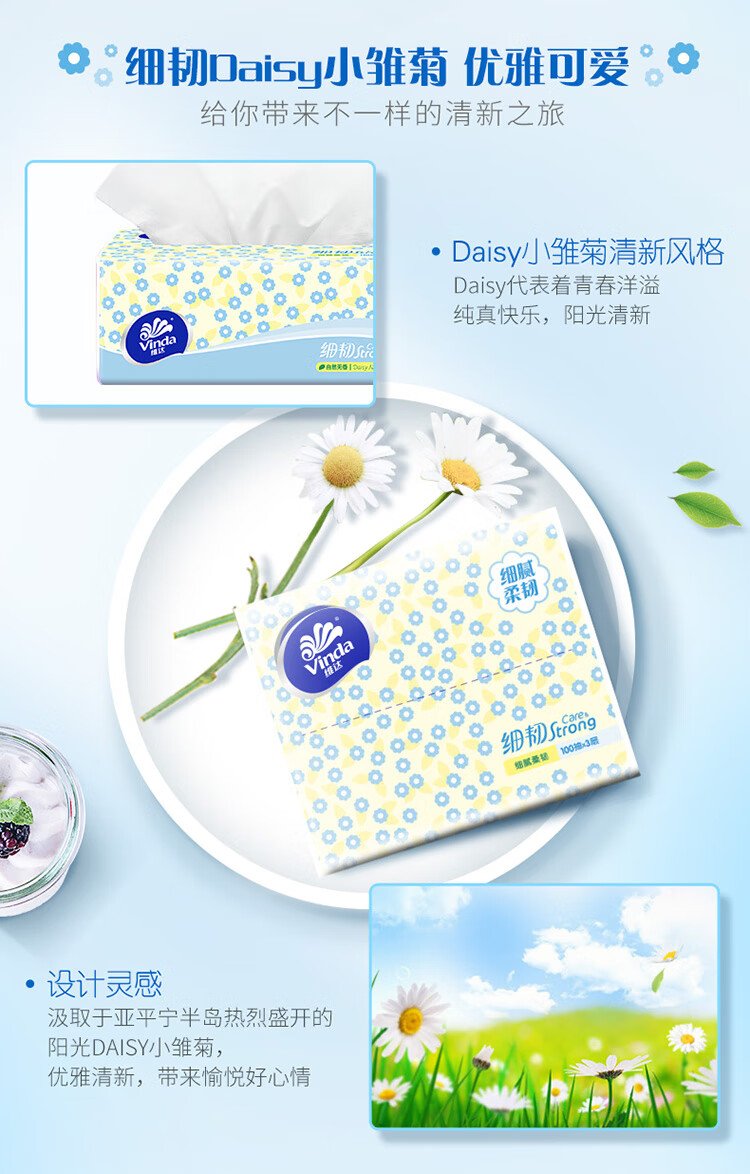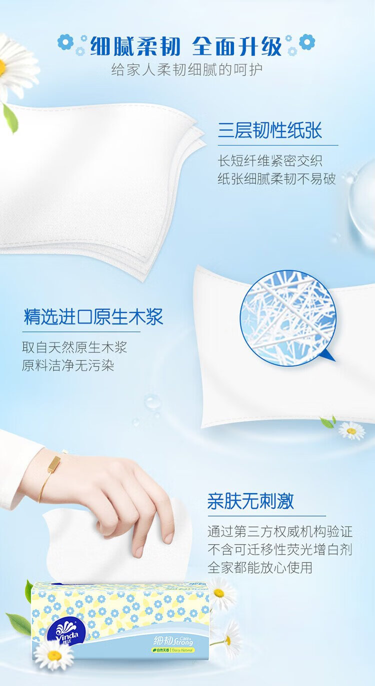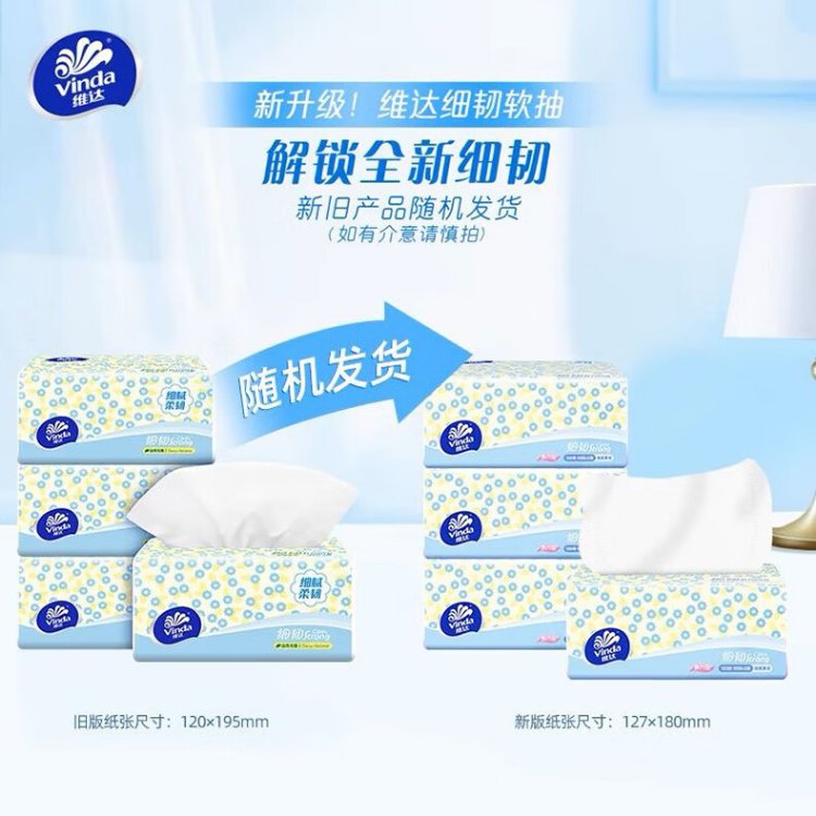 Vinda thin and tough 100-pack facial tissue household sanitary napkins household natural unscented tissue paper 3-layer 100-pack * 8 packs