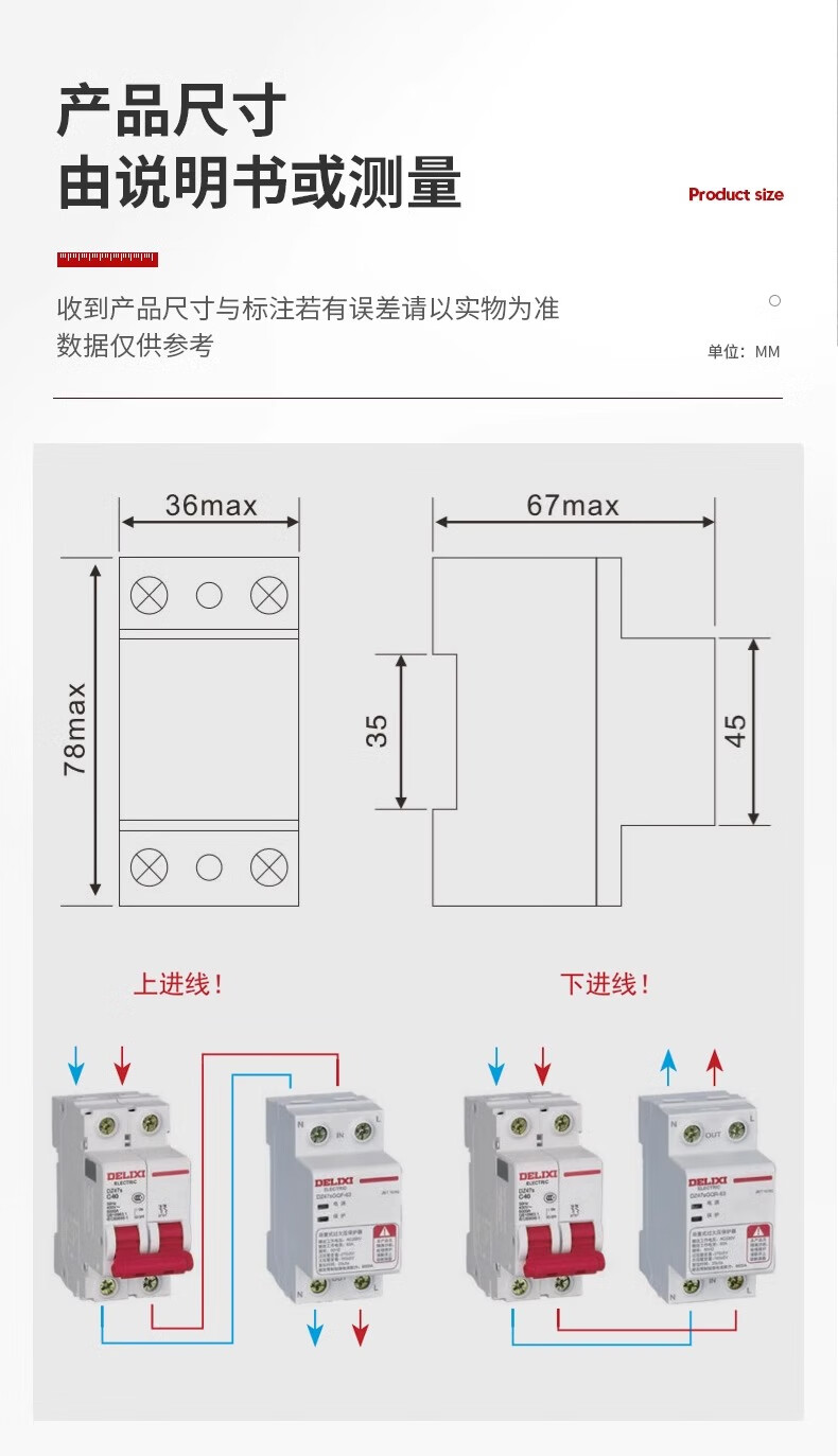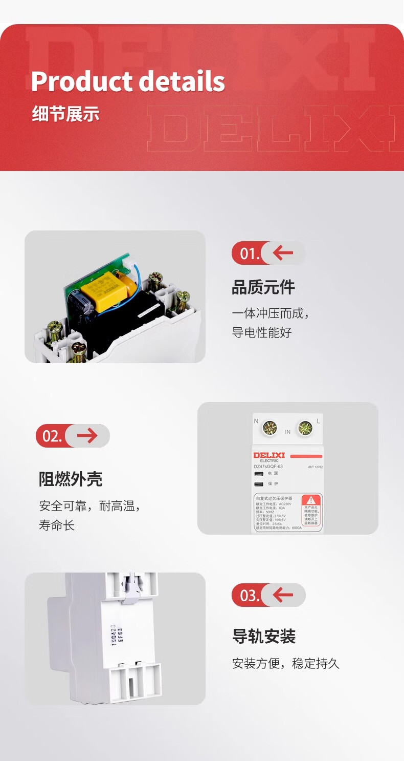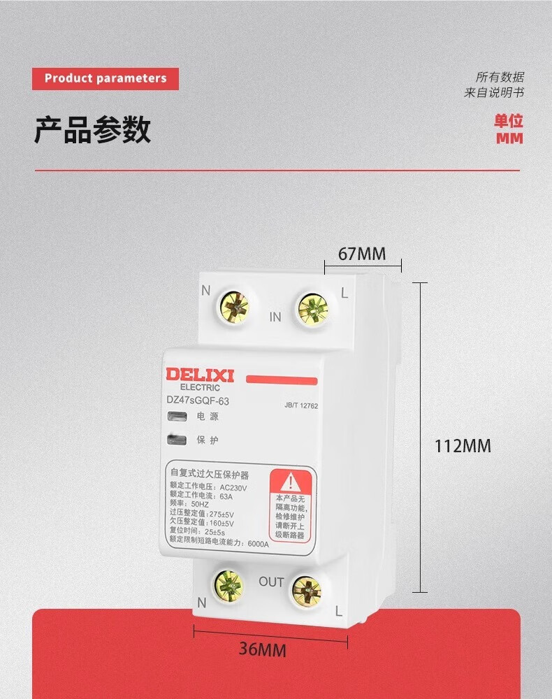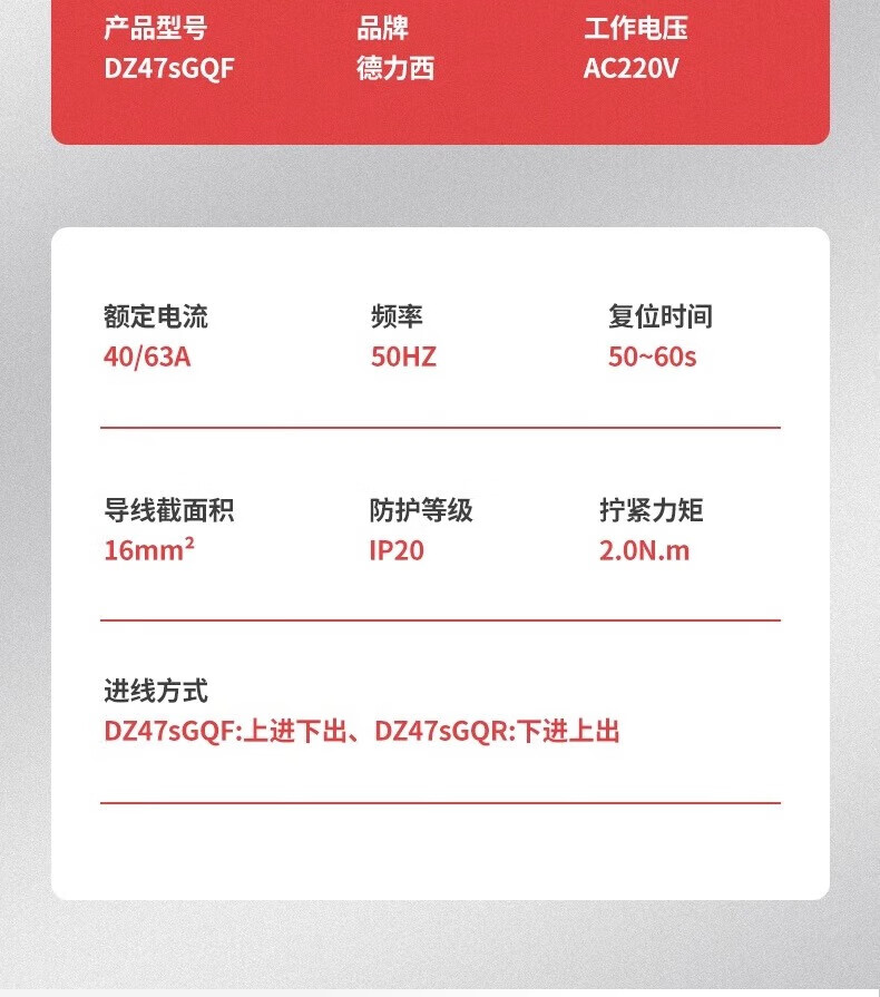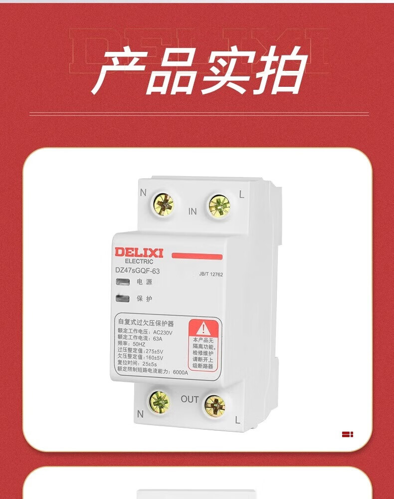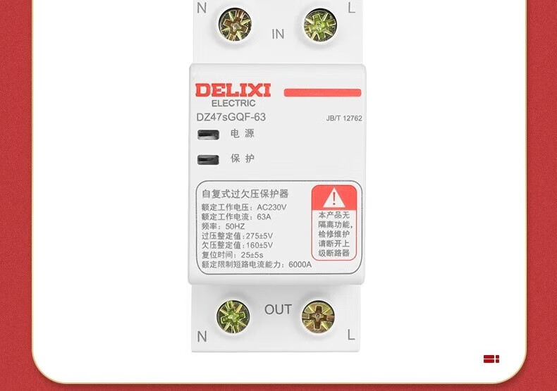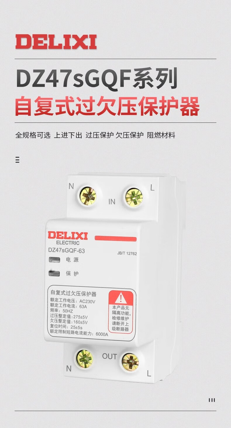 Delixi DZ47SGQF over-voltage and under-voltage protector 2P63A household 220V top in and bottom out 40A self-recovery protection 63A 1P+N