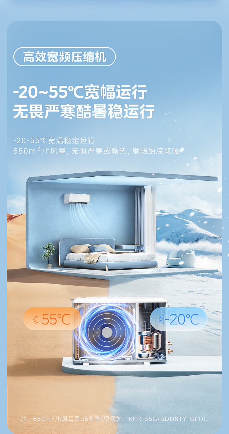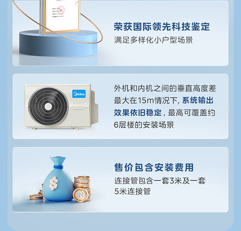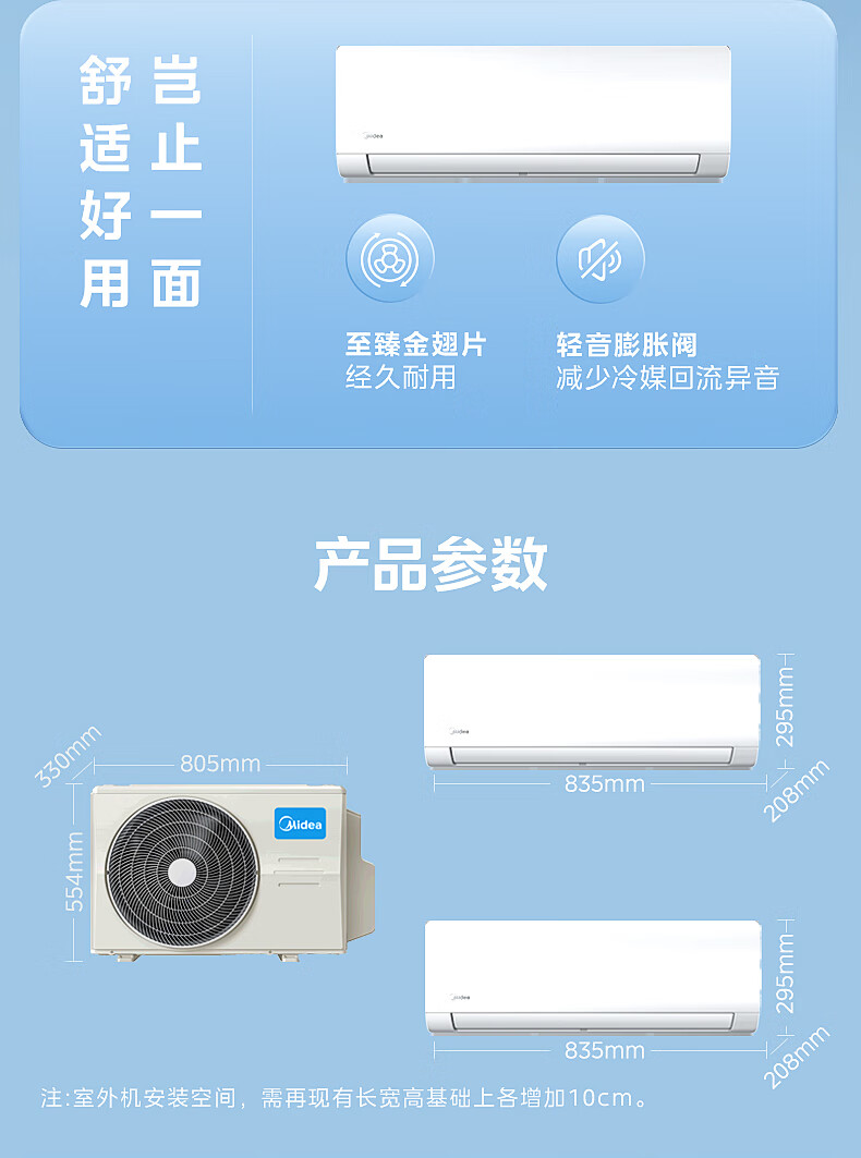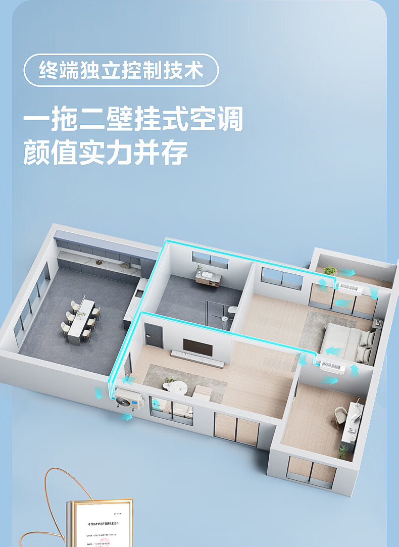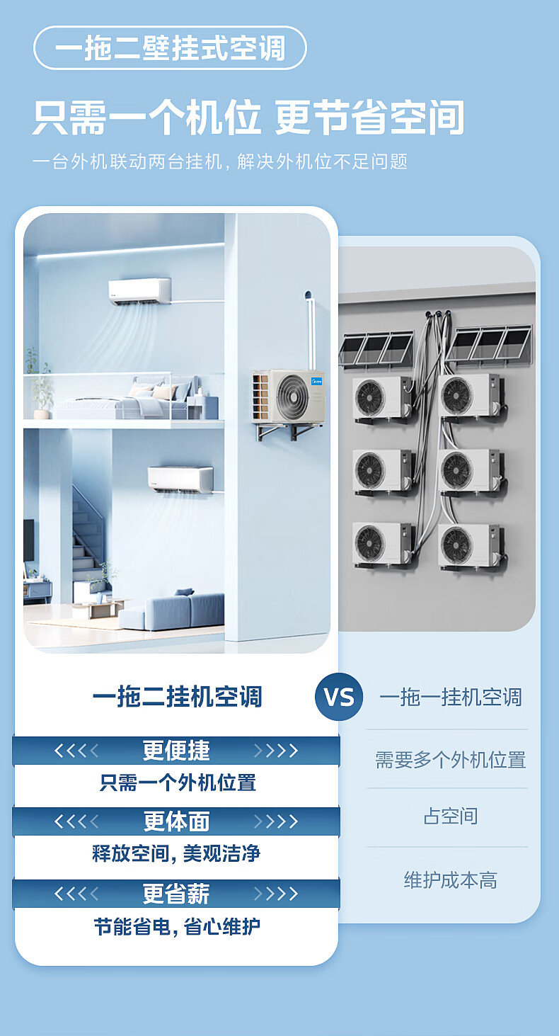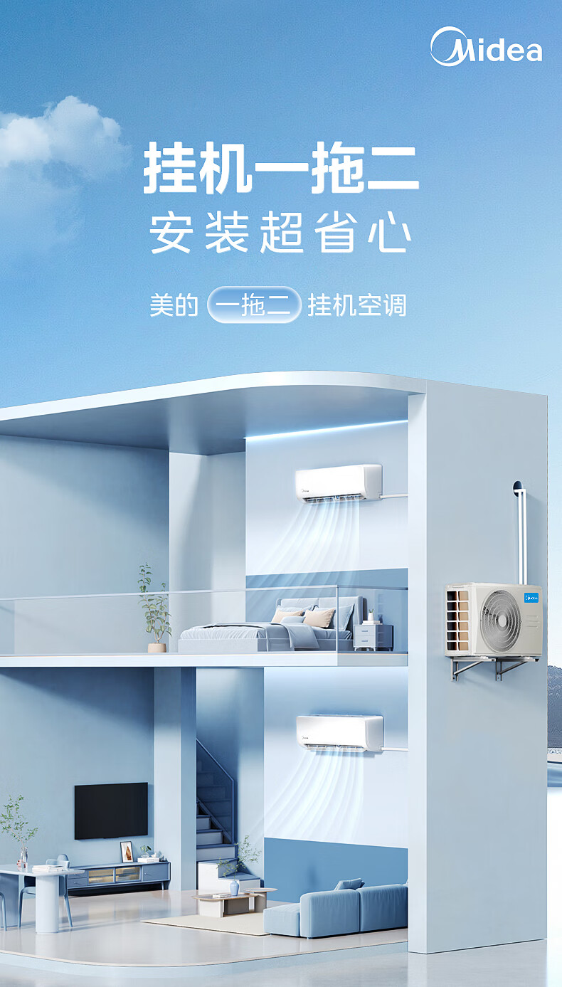 Midea central air conditioner one-to-two household hang-up, new level of energy efficiency DC variable frequency heating and cooling, energy-saving bedroom air conditioner, wall-mounted sub-basic one-to-two hang-up air conditioner, large 2 horses, one-to-two hang up, national supplement, ready for delivery