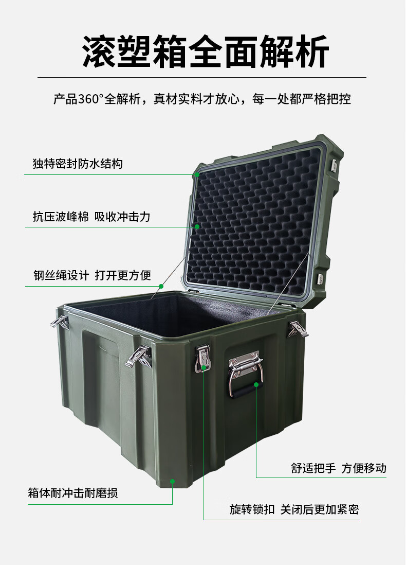 Rotational molding box, outdoor portable green multifunctional equipment box, airdrop box, aerial photography instrument box, equipment box, emergency supply box, outdoor waterproof airdrop box, transport box, equipment box, storage box, rotomolding ammunition box 500_400_170mm