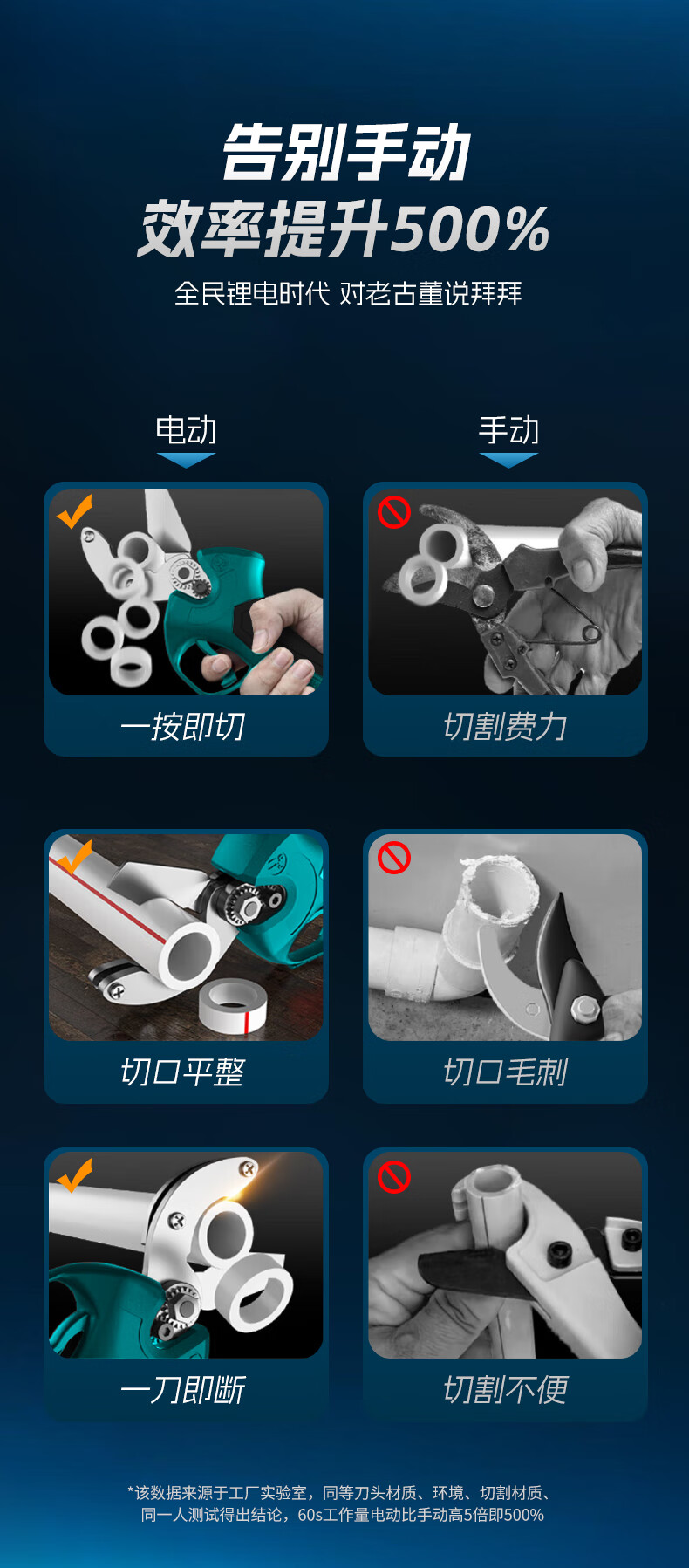 Ruishi Dayi Ruishi Dayi electric PPR pipe cutter, water pipe scissors, pipe cutter, PVC cutting knife, electric hot melt PE quick cutter, lithium water pipe cutter 36v, one charger, one charger, German brushless