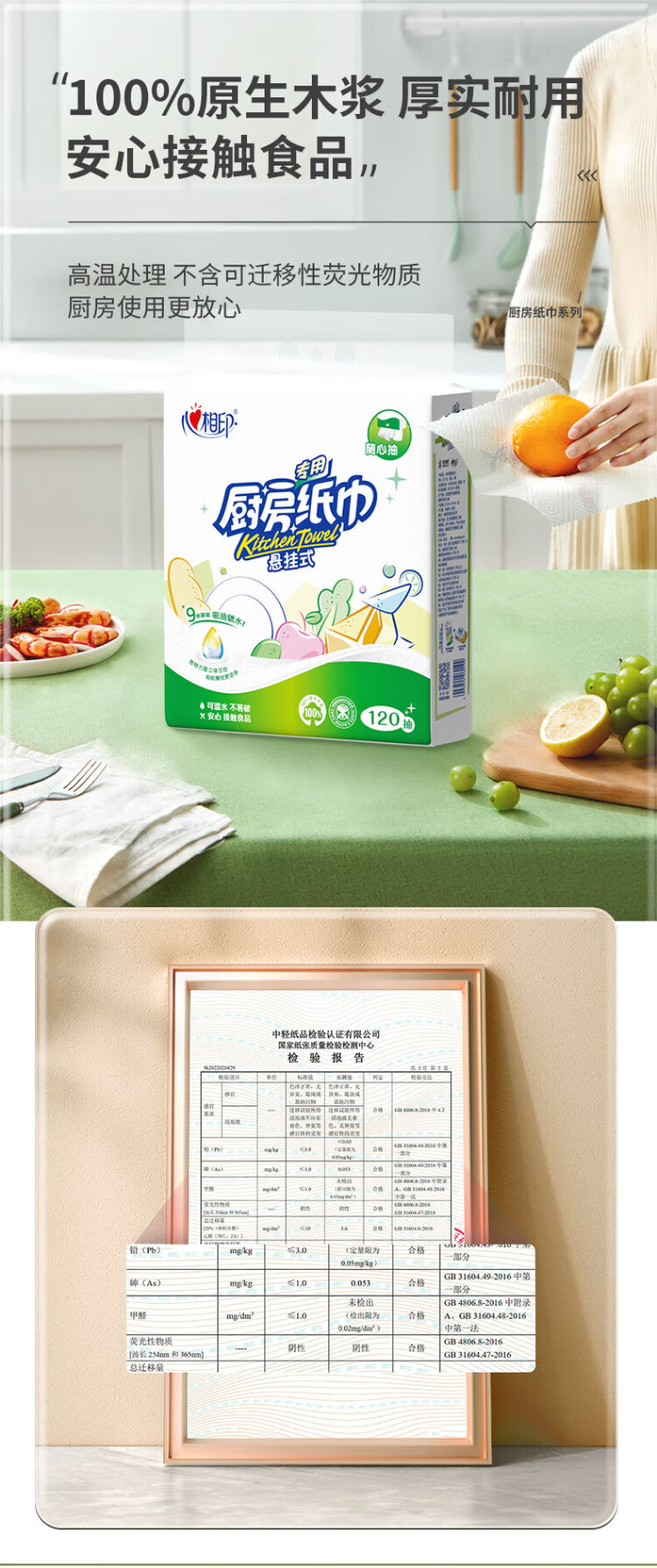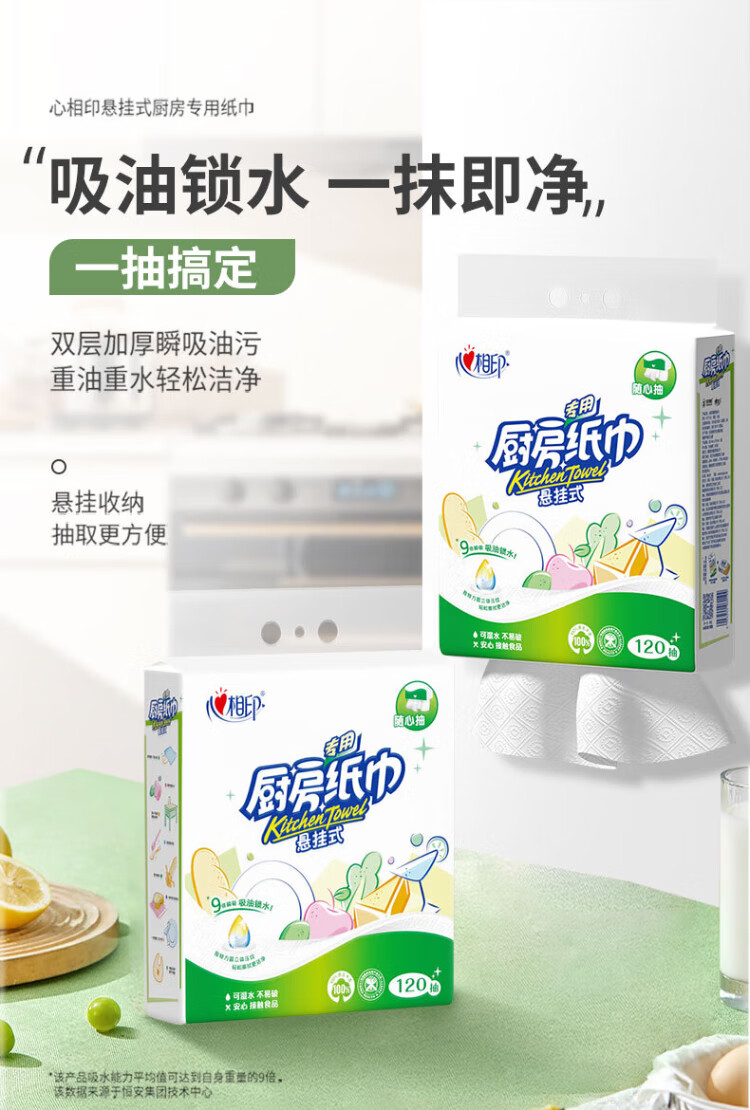 Heart-to-heart kitchen towel hanging paper towel for hand wiping, disposable, convenient for absorbing oil, water and removing oil stains, 9 times water absorption, 2 layers, 120 pumps*3 bags
