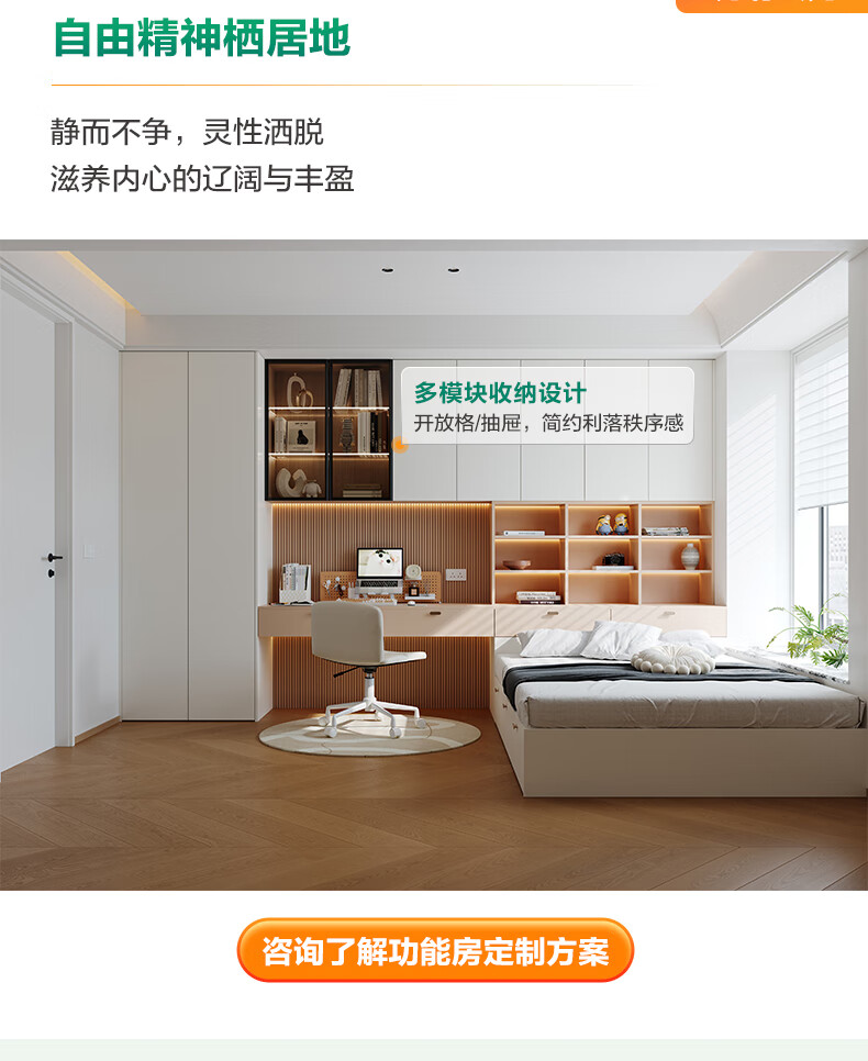 Oubli tatami customized modern simple wardrobe and bookcase combination integrated multi-layer board tatami bed customized for the whole house 899 per square meter customized gold
