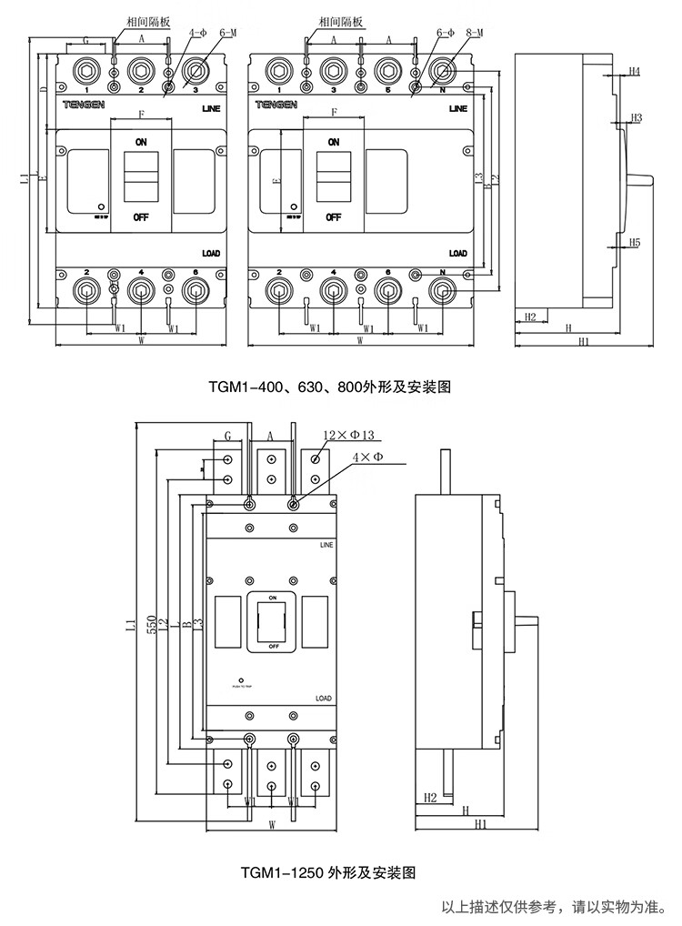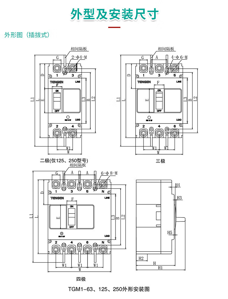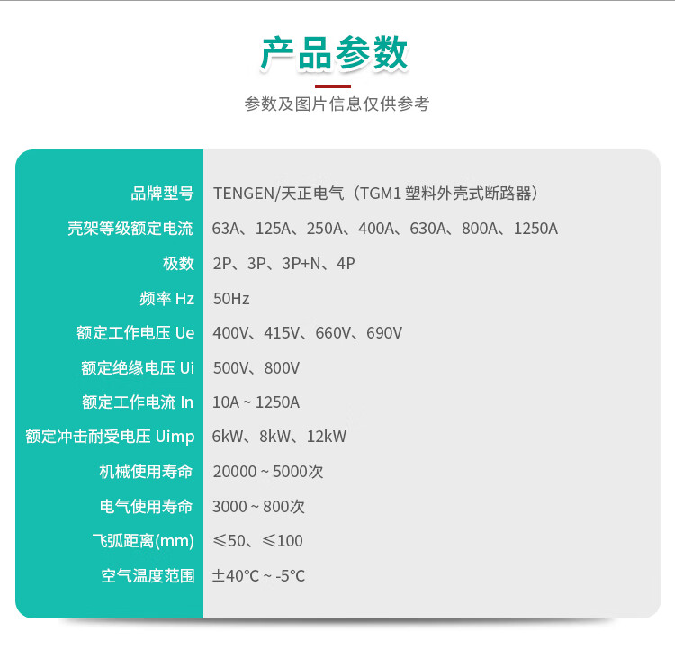 Tianzheng Electric TENGEN plastic case circuit breaker air switch TGM1 series 400A frame current TGM1-400L/3300 400A
