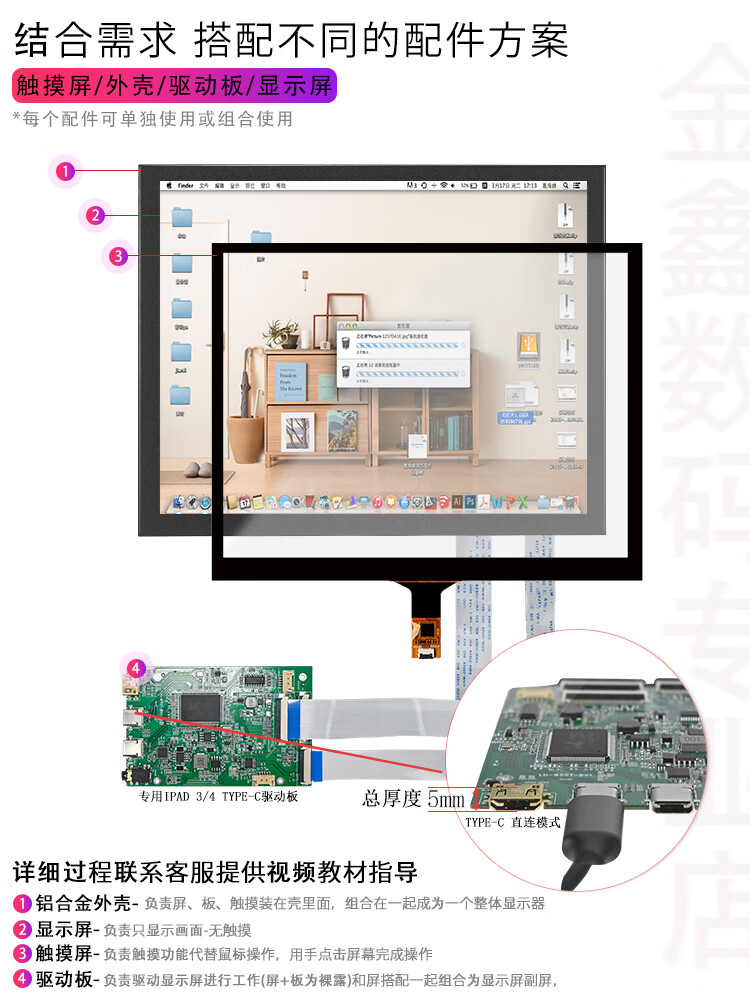 Laptop tablet screen modified driver board DIY LCD display with HDMI extended secondary screen U disk playback Type A package LVDS standard version