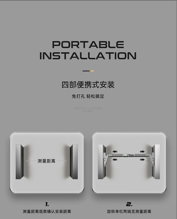GERTHRON German horizontal bar indoor pull-up device on the door for household punch-free multi-functional rings for fitness students' high school entrance examination, upgraded anti-slip, super stable 76-95cm