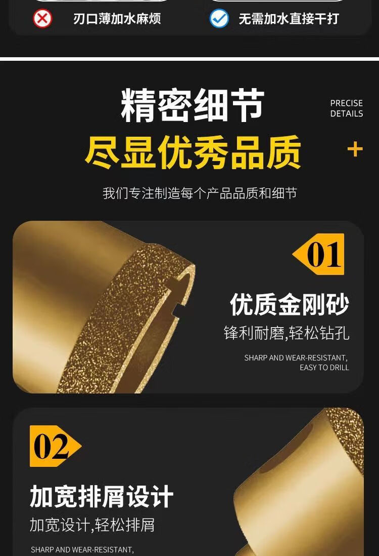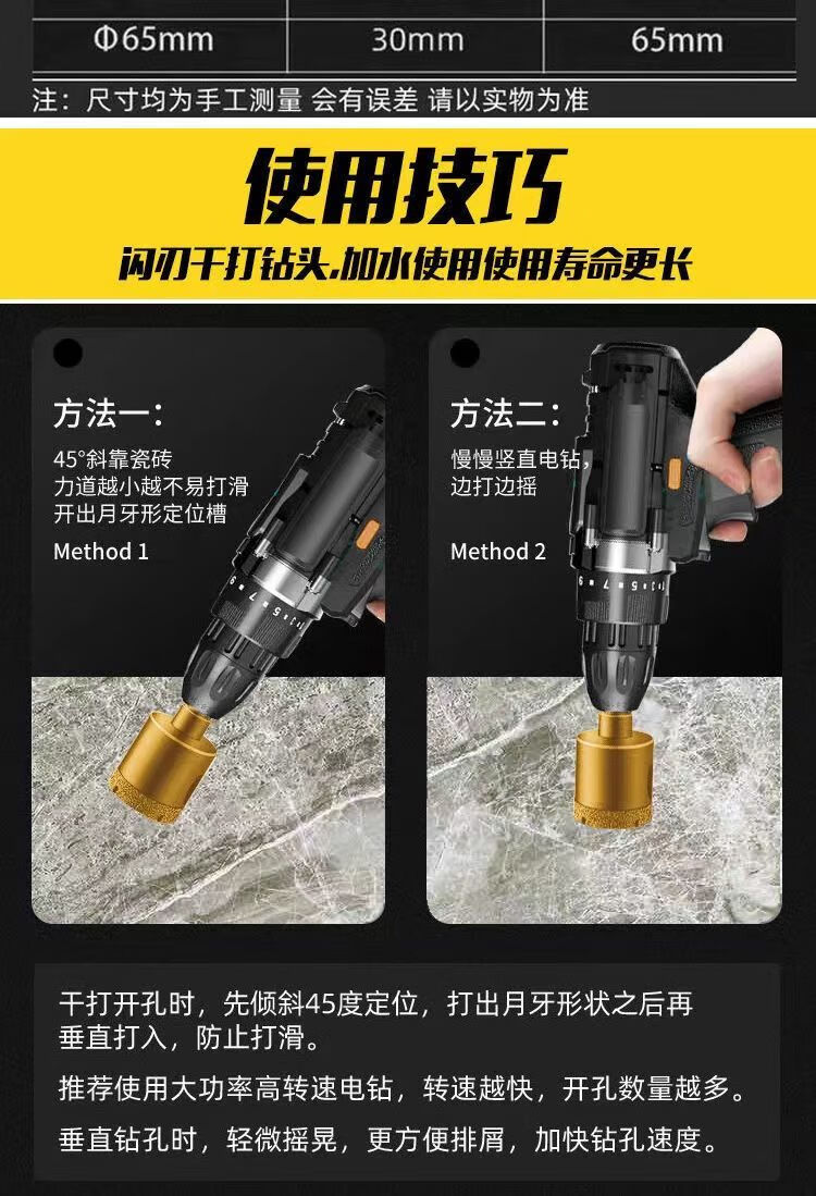 Meikejie dry drill tile hole opener marble hole drill bit vitrified brick rock slab granite special stone hole drill bit dry drill hole 45mm/4.5 cm 2 pieces golden dry drill full ceramic tile vitrified brick ceramic stone