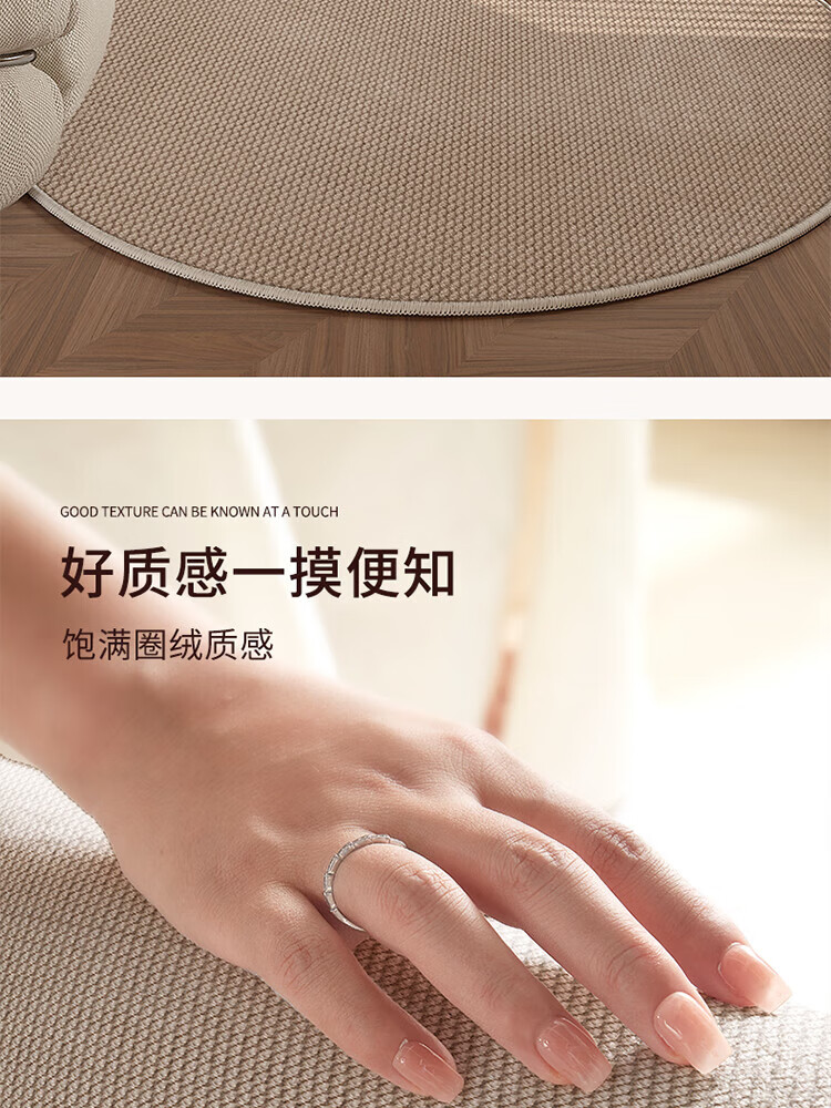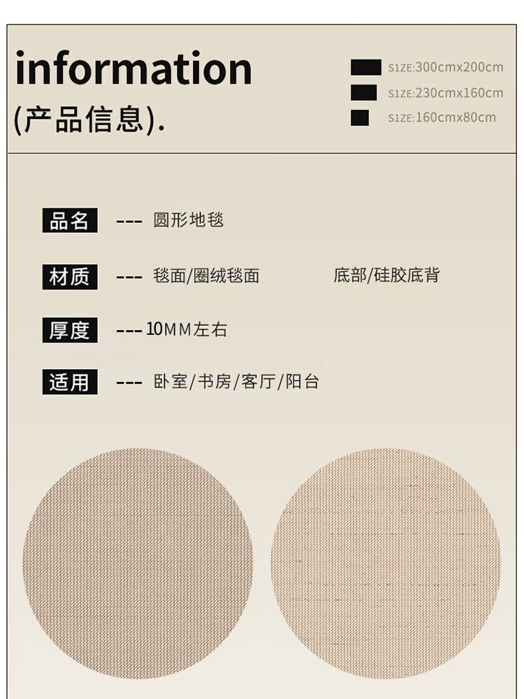 Budis carpet living room waterproof non-slip round solid color simple style swivel chair sofa rocking chair balcony blanket can be customized Moon-round diameter 80CM