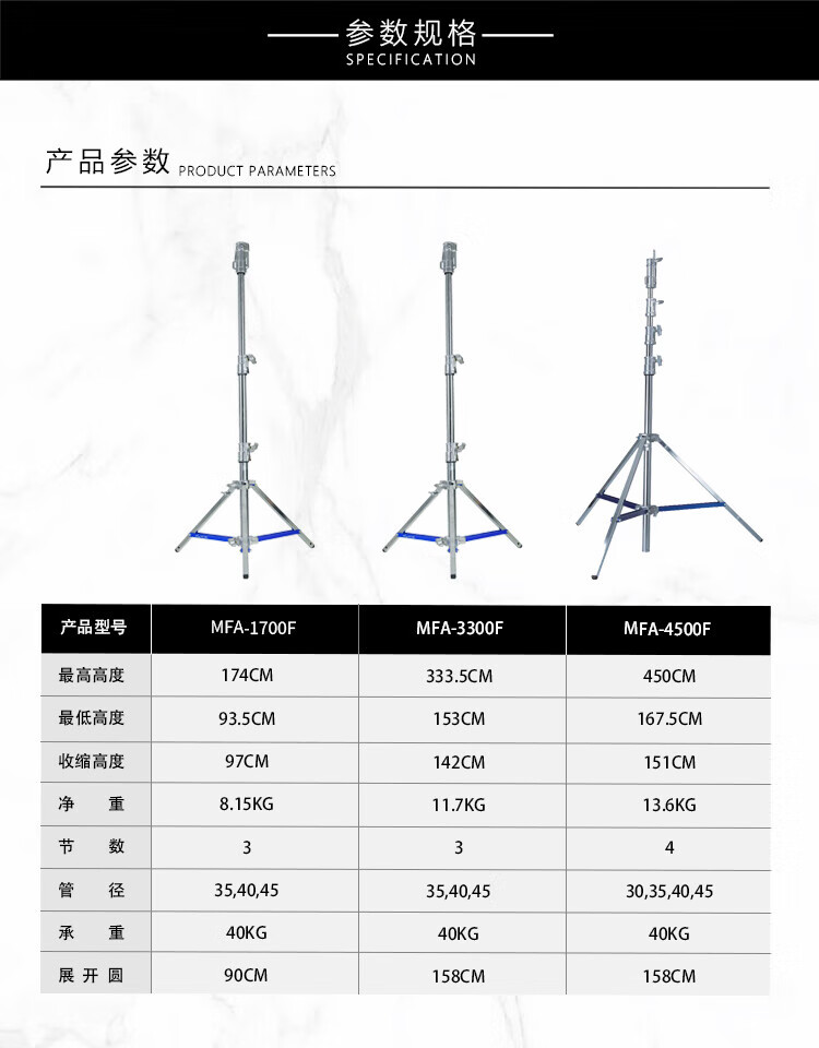 Meking/Aitus mfa-1700f steel photography light stand heavy-duty small steel legs film and television thickened stainless steel large load-bearing tripod suitable for LS 600x pro MFA-3300F 3.3 meters heavy-duty small steel legs