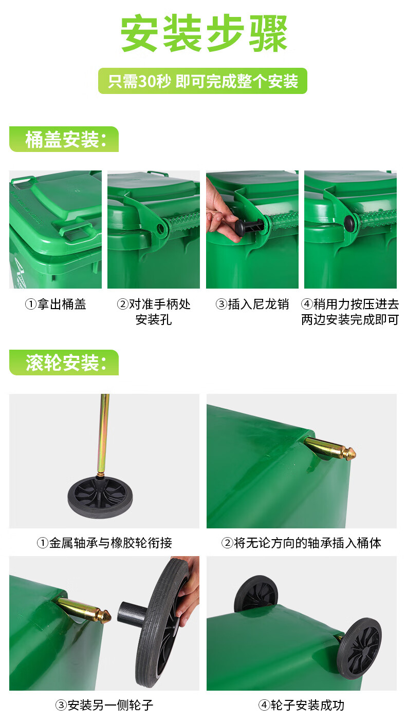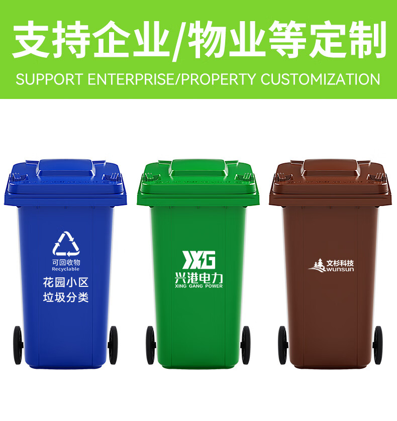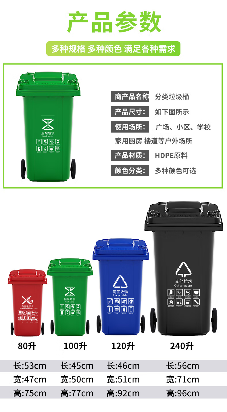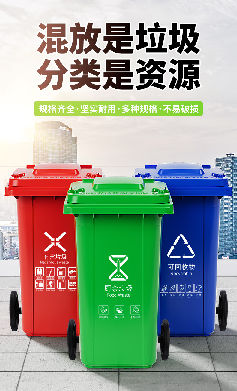 Kai Tak classified trash can with lid, large capacity, large plastic bucket, property community classified commercial catering kitchen trash can, blue (recyclable garbage), 120 liters, trailerable (length 47*width 53*height 93cm)