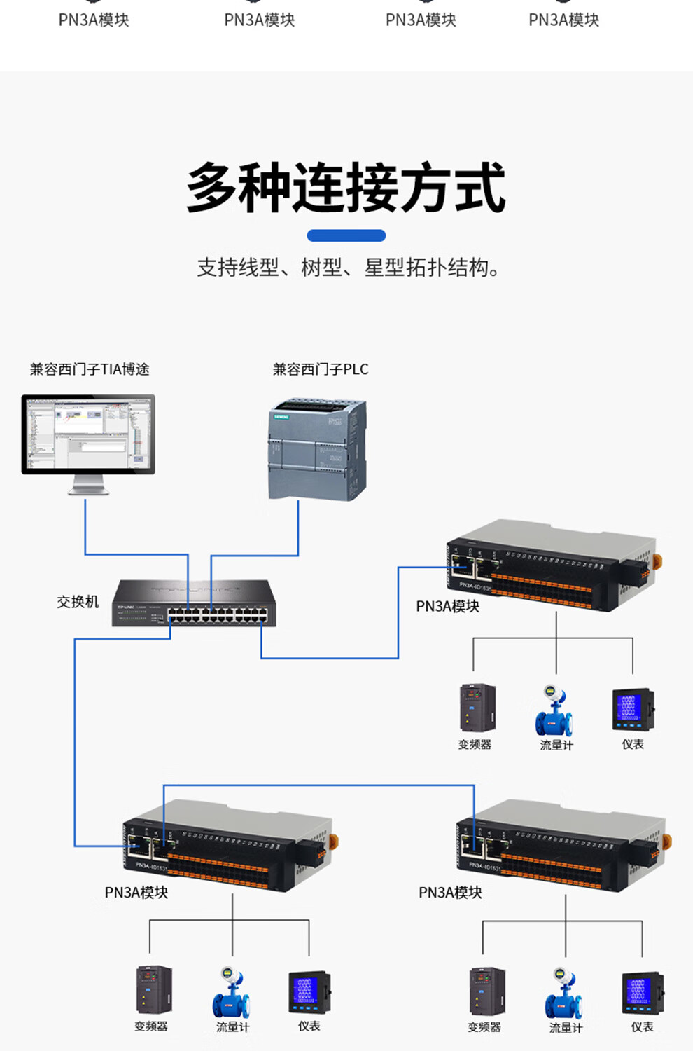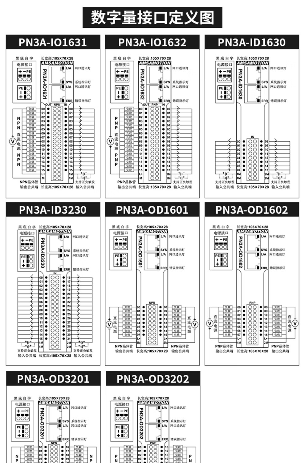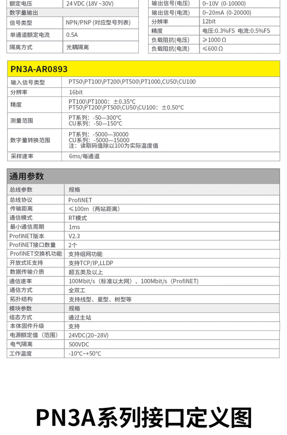Emerson Profinet remote io module PN distributed switch analog temperature weighing encoder data acquisition dual network port built-in switch module PN3A-IO1632 16 in 16 out PNP digital