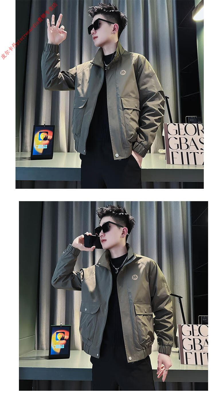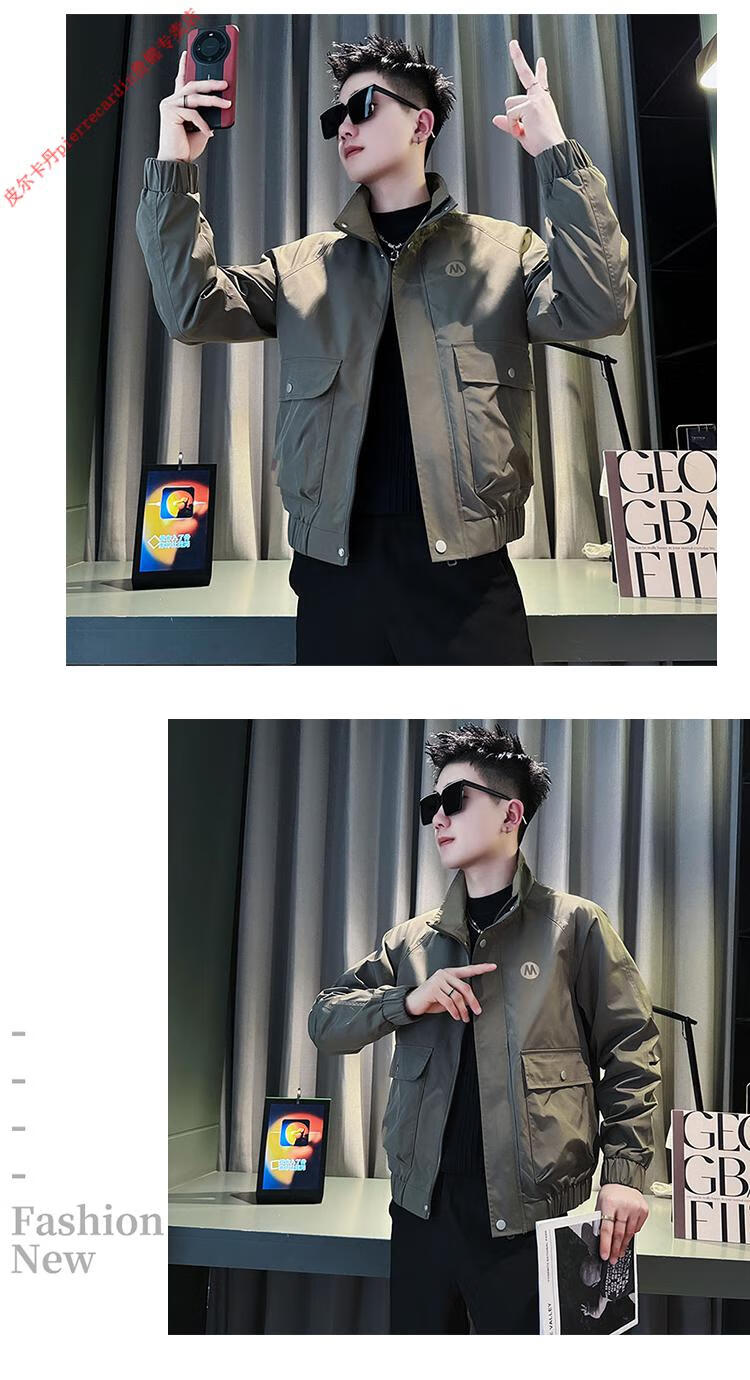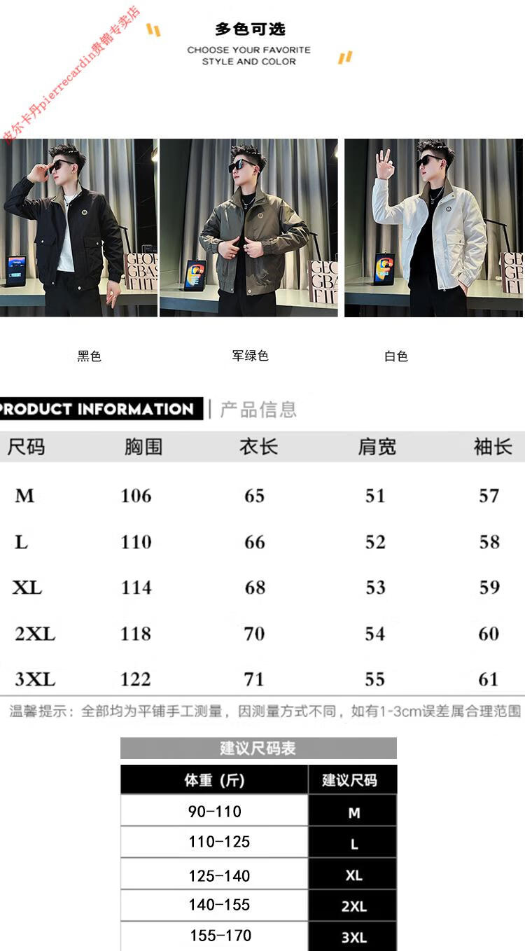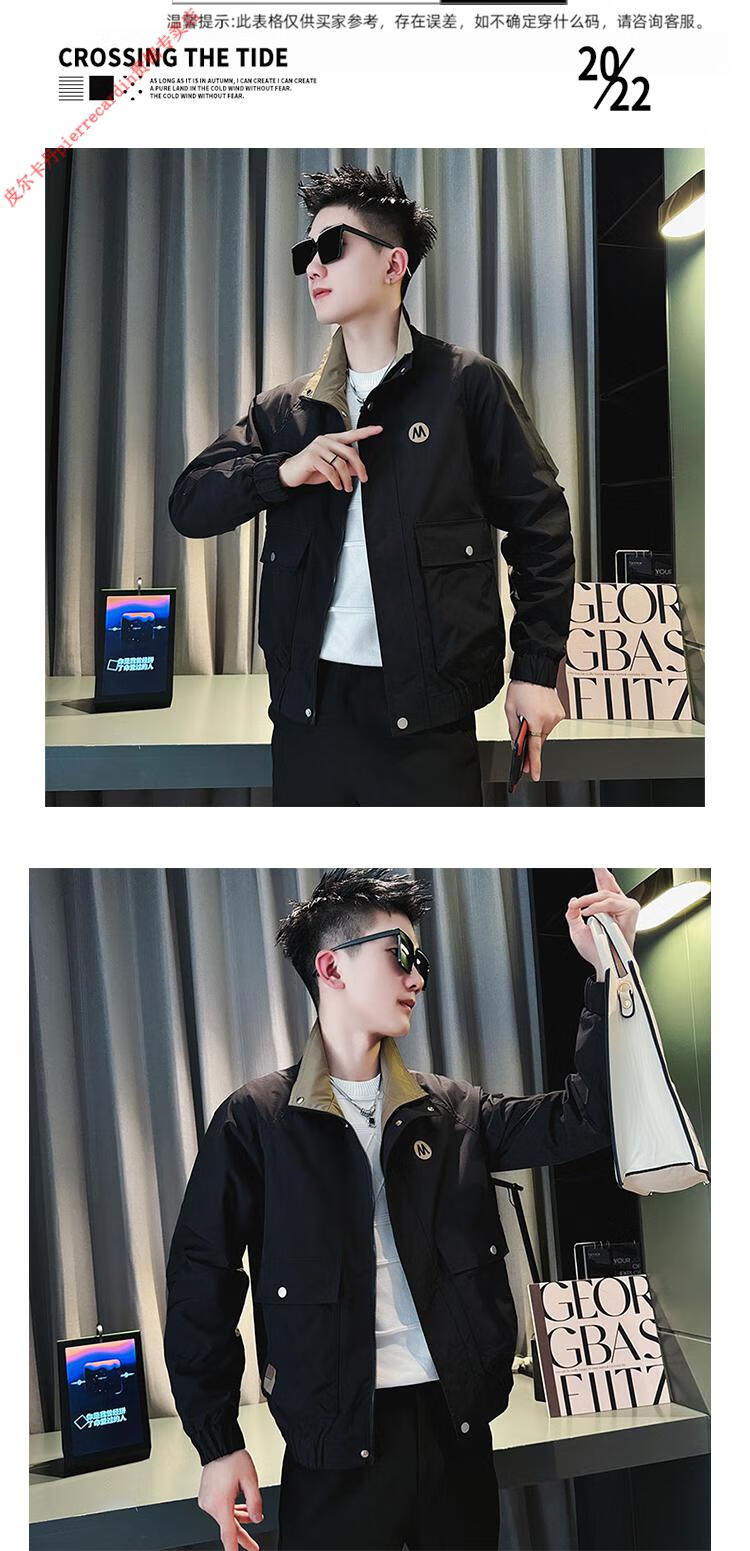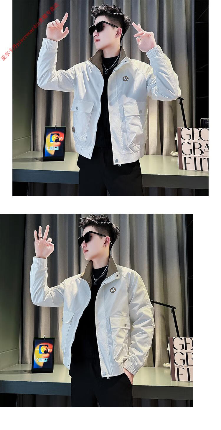 Pierre Cardin Work Jacket Men's High-end Handsome Short Jacket Men's 2025 New Men's Casual Spring and Autumn Top Black Cotton Warm L Recommended 115-130 catties