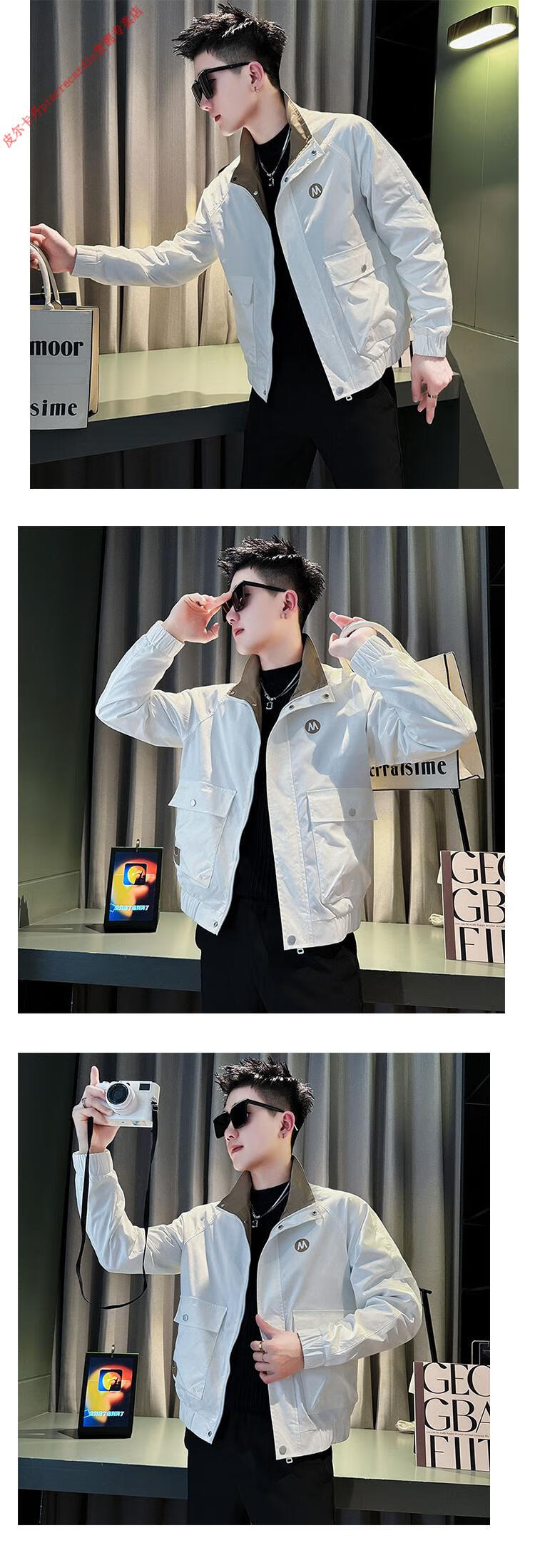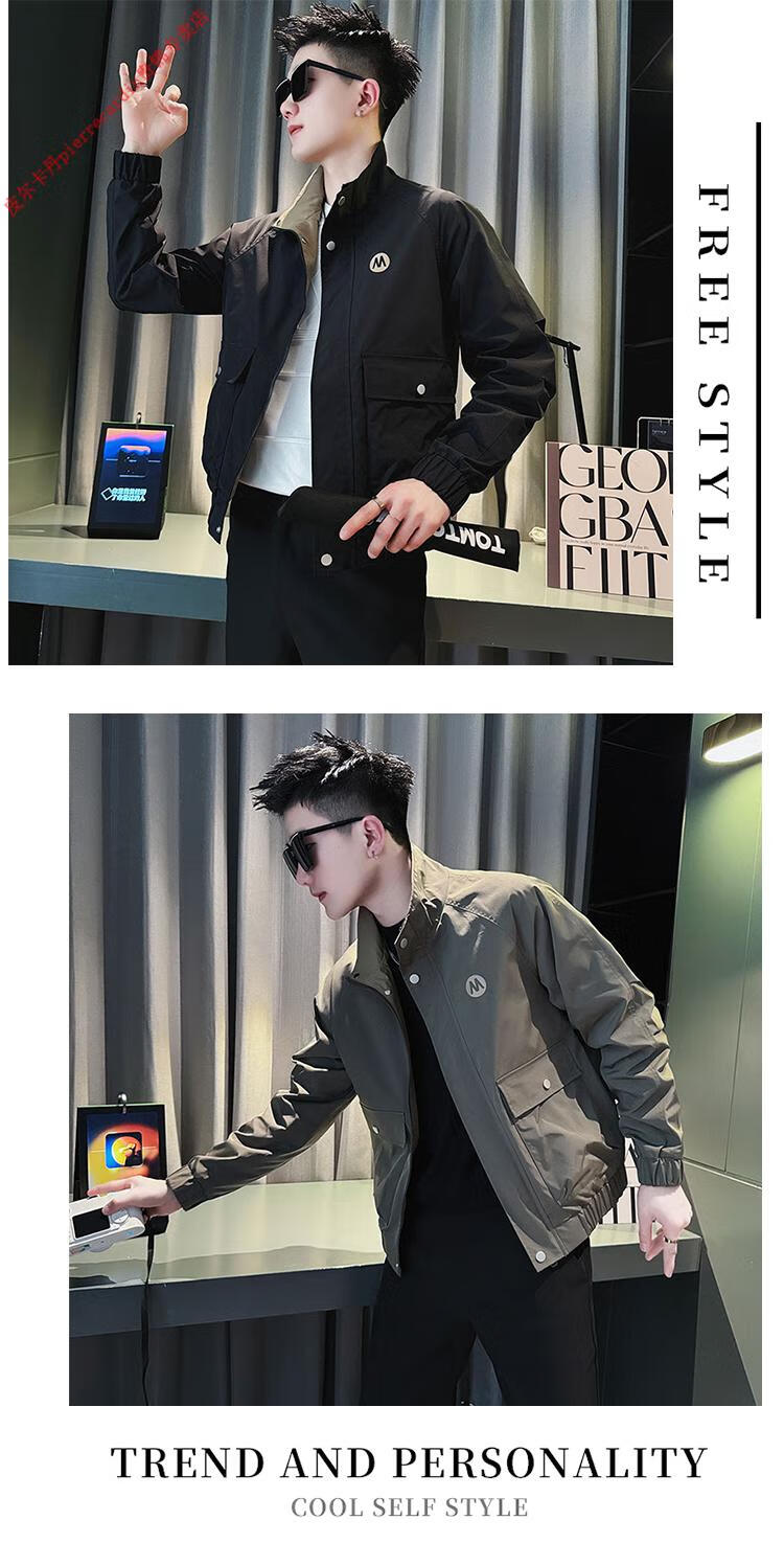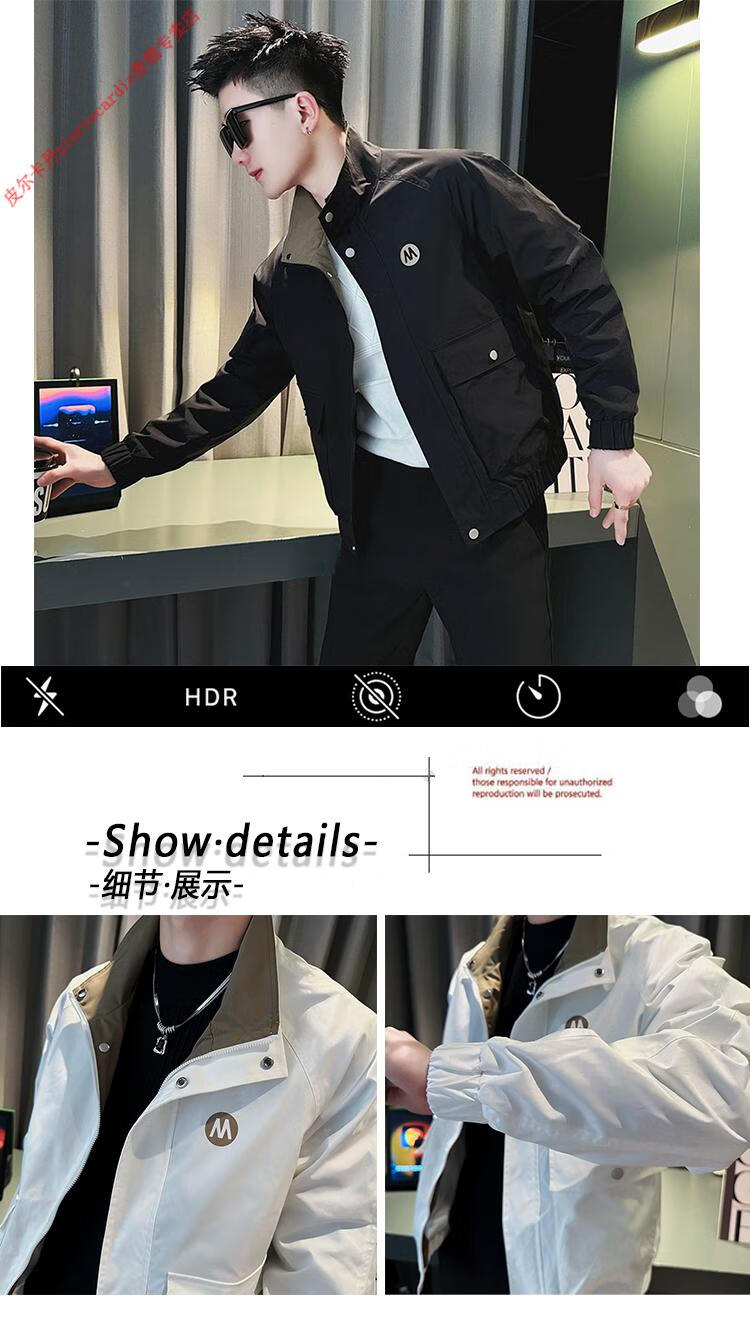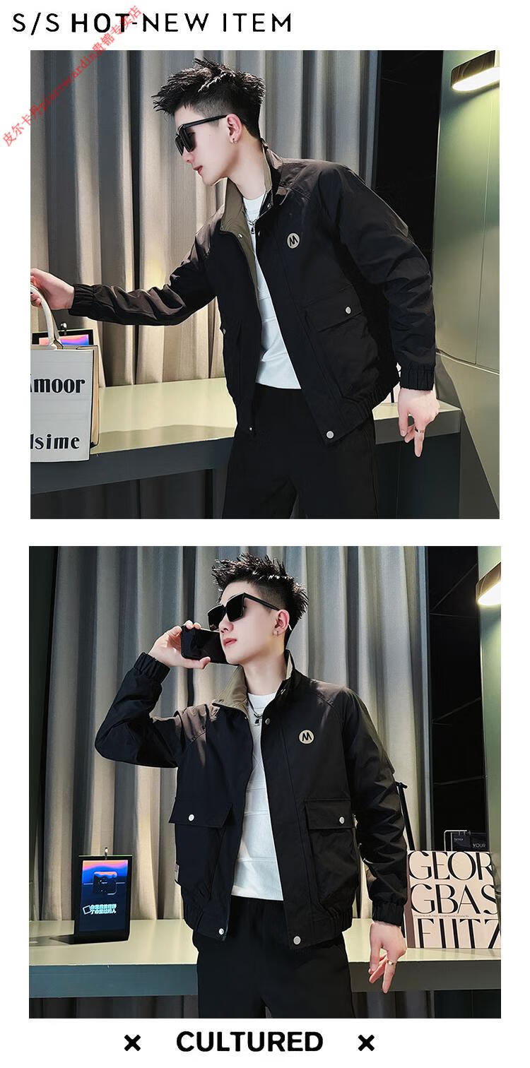 Pierre Cardin Work Jacket Men's High-end Handsome Short Jacket Men's 2025 New Men's Casual Spring and Autumn Top Black Cotton Warm L Recommended 115-130 catties