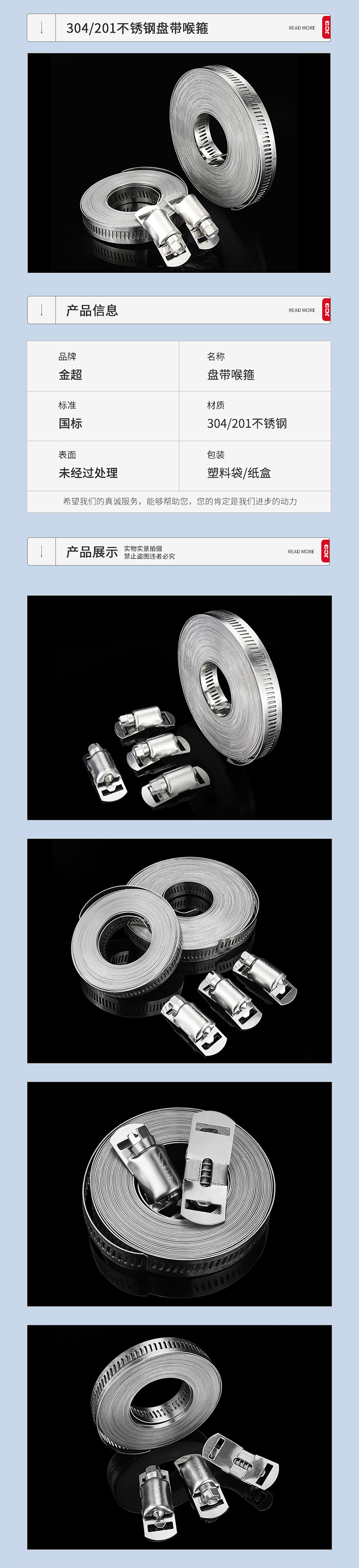 Jinchao 304 stainless steel homemade American hose hoop clamp large pipe clamp perforated steel belt pipe hoop coiled strap 2 meters + 5 hoop heads (1 set) 304