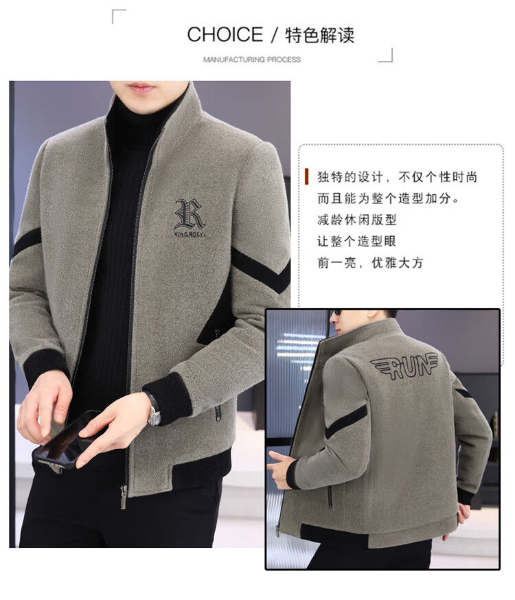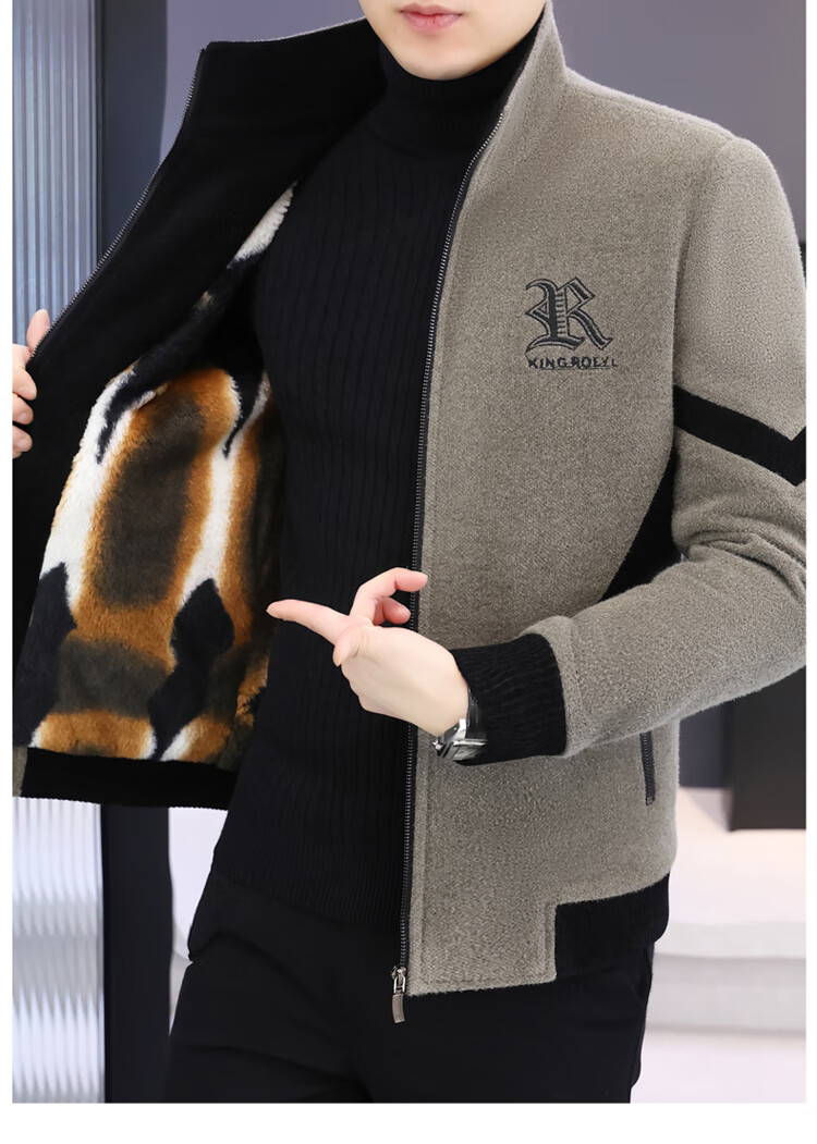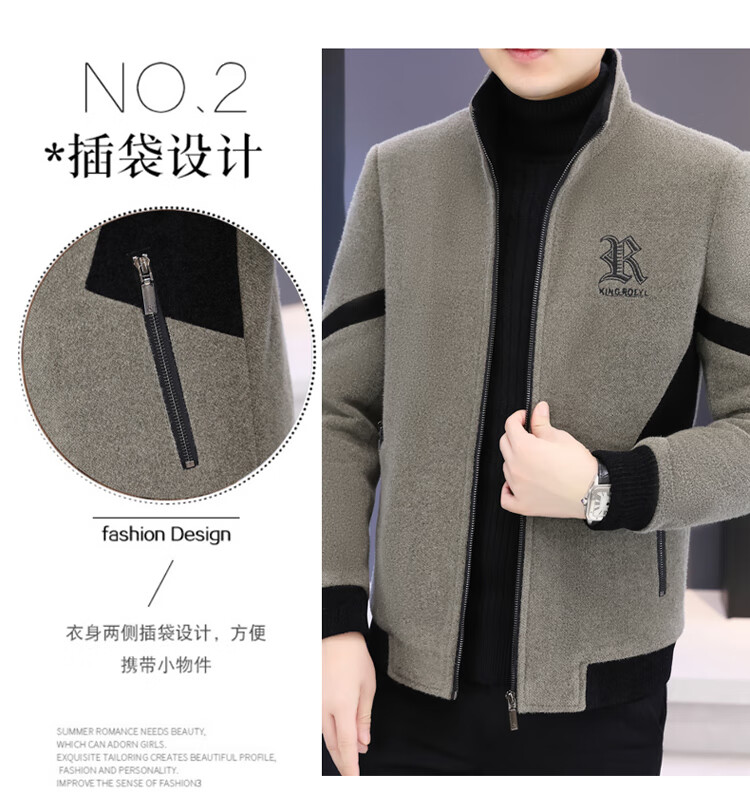 Woodpecker (TUCANO) velvet jacket men's new winter stand-up collar casual thickened short gold mink velvet coat coat for men 8883-khaki thickened velvet L 110-125 catties