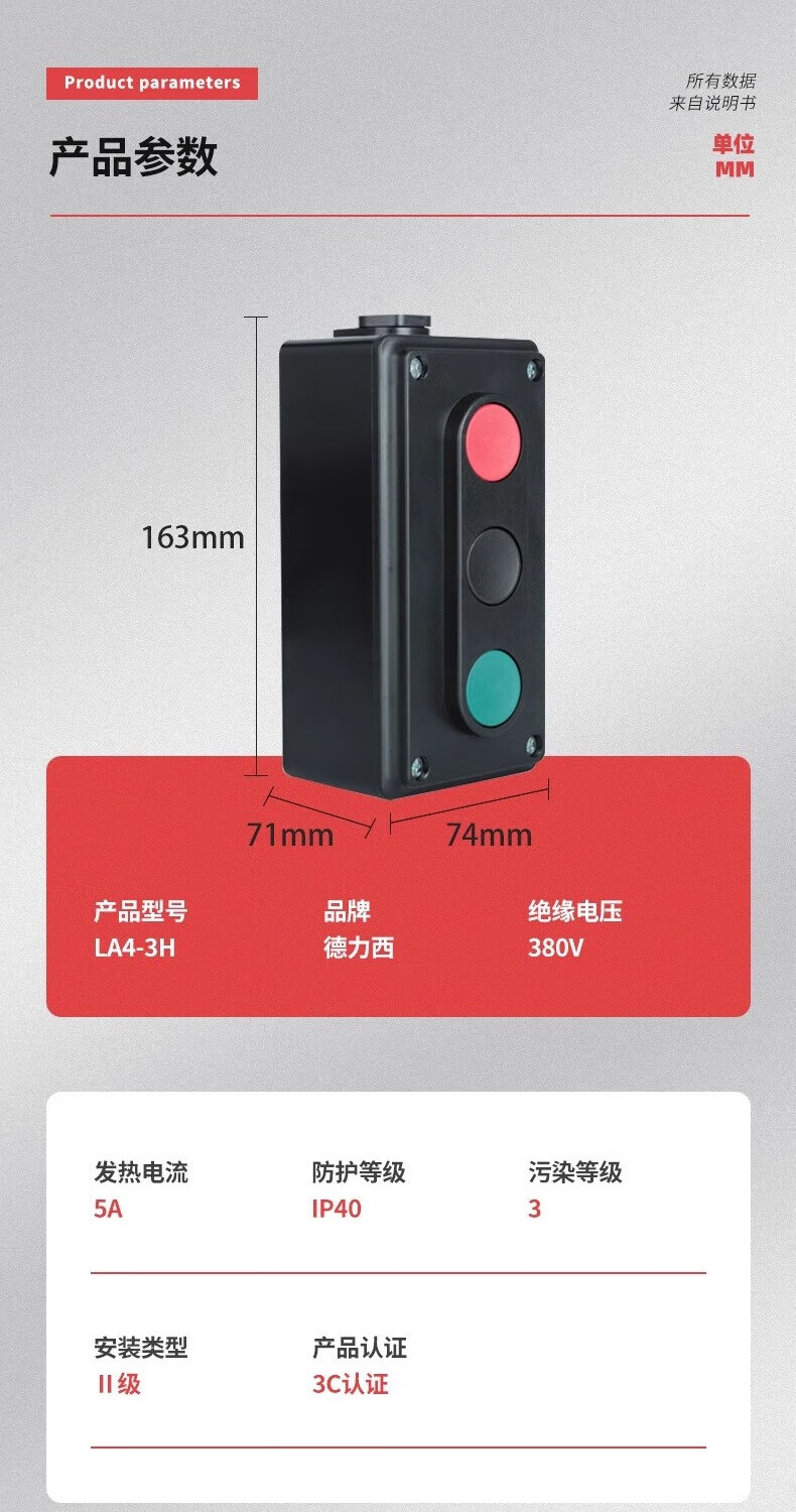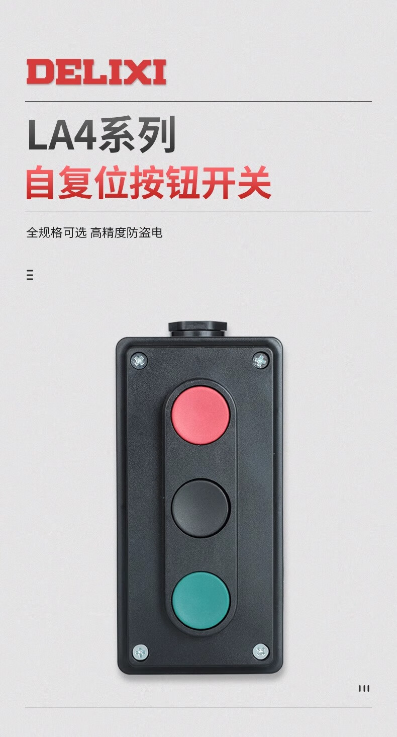 Delixi button box LA4-3H triple button red and green button box self-reset start stop switch LA4-3H