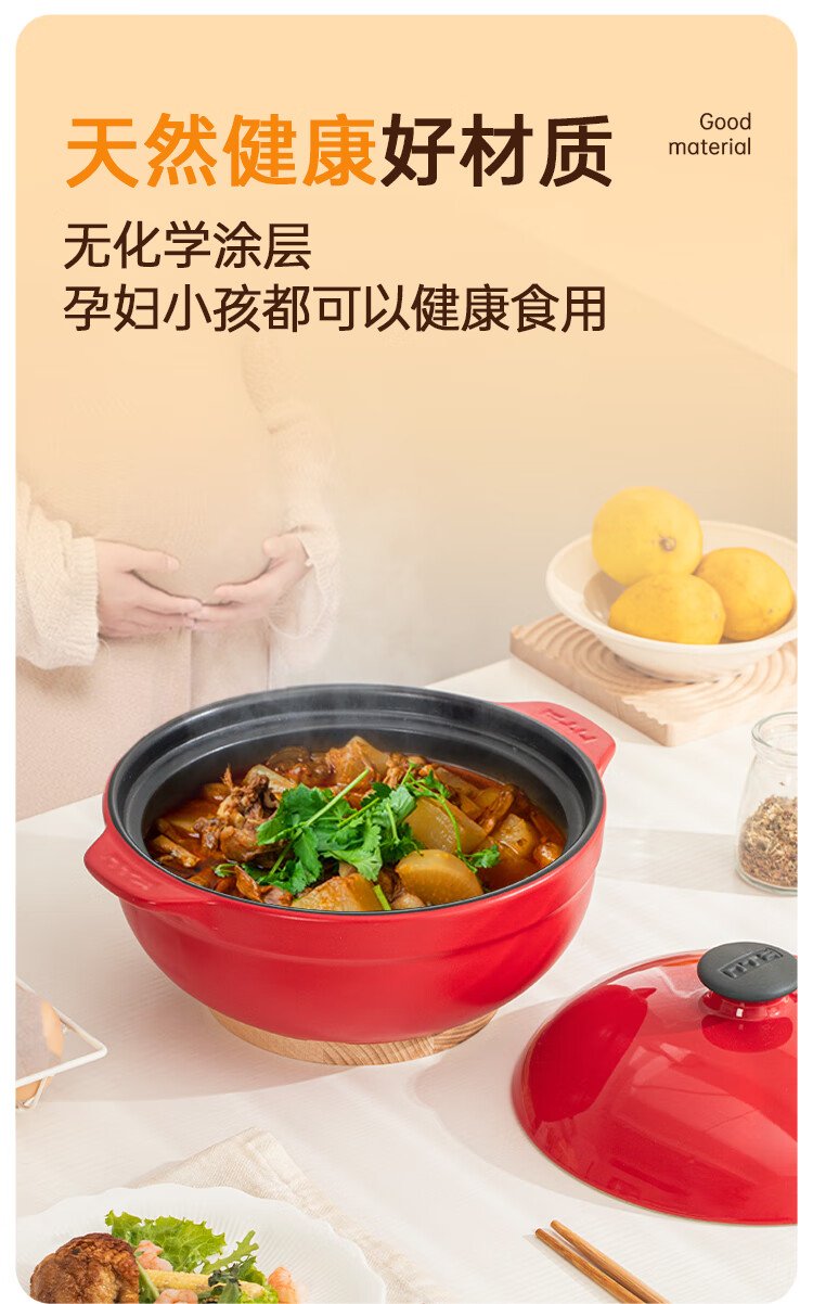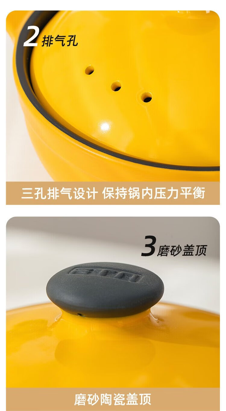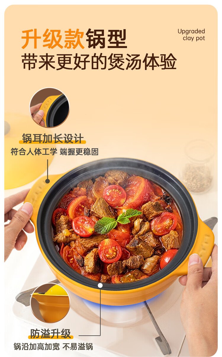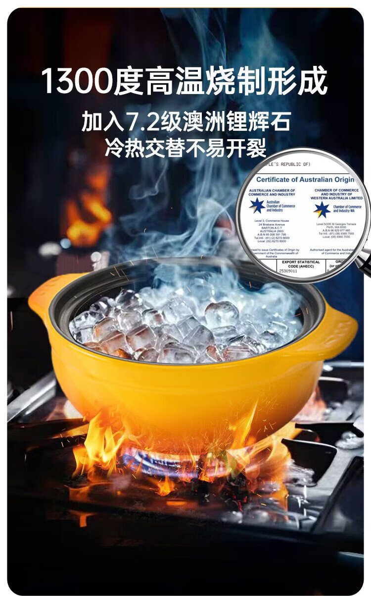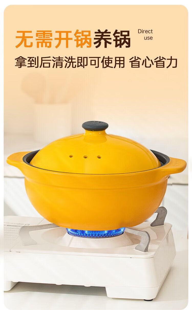 KTN casserole wide-mouth ceramic soup pot for cooking medicine, porridge and stew, clay pot hot pot, high temperature resistant gas stove, household wide-flavor pot, upgraded version yellow (suitable for 4-6 people) 2.7L