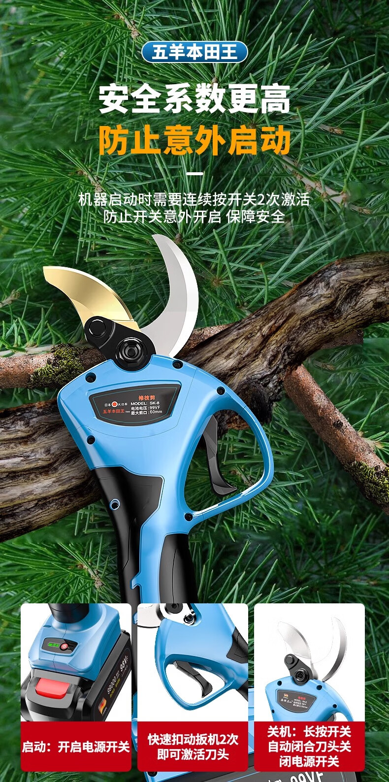 Yamaha brushless electric scissors, rechargeable garden shears, branch pruning shears, garden scissors, lithium battery tree shears, pruning tool, imported waterproof model 5 cm, two electric and one flush