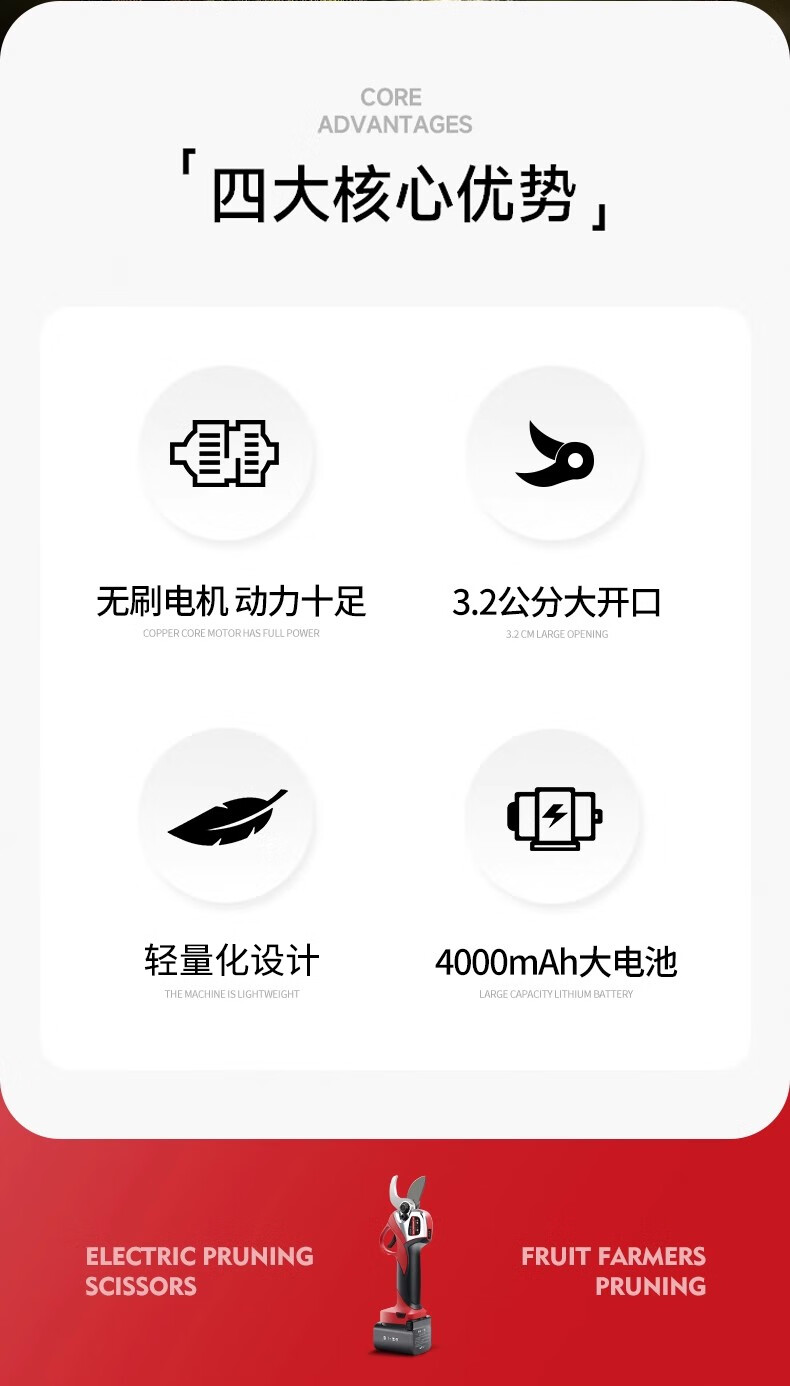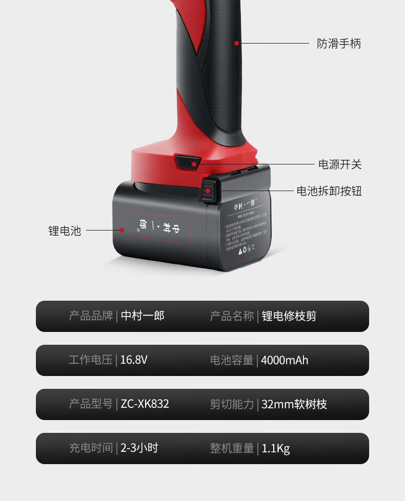 Ichiro Nakamura electric pruning shears branch scissors electric branch cutting hardware electric tools fruit farmers special electric scissors 32MM-with two batteries-832