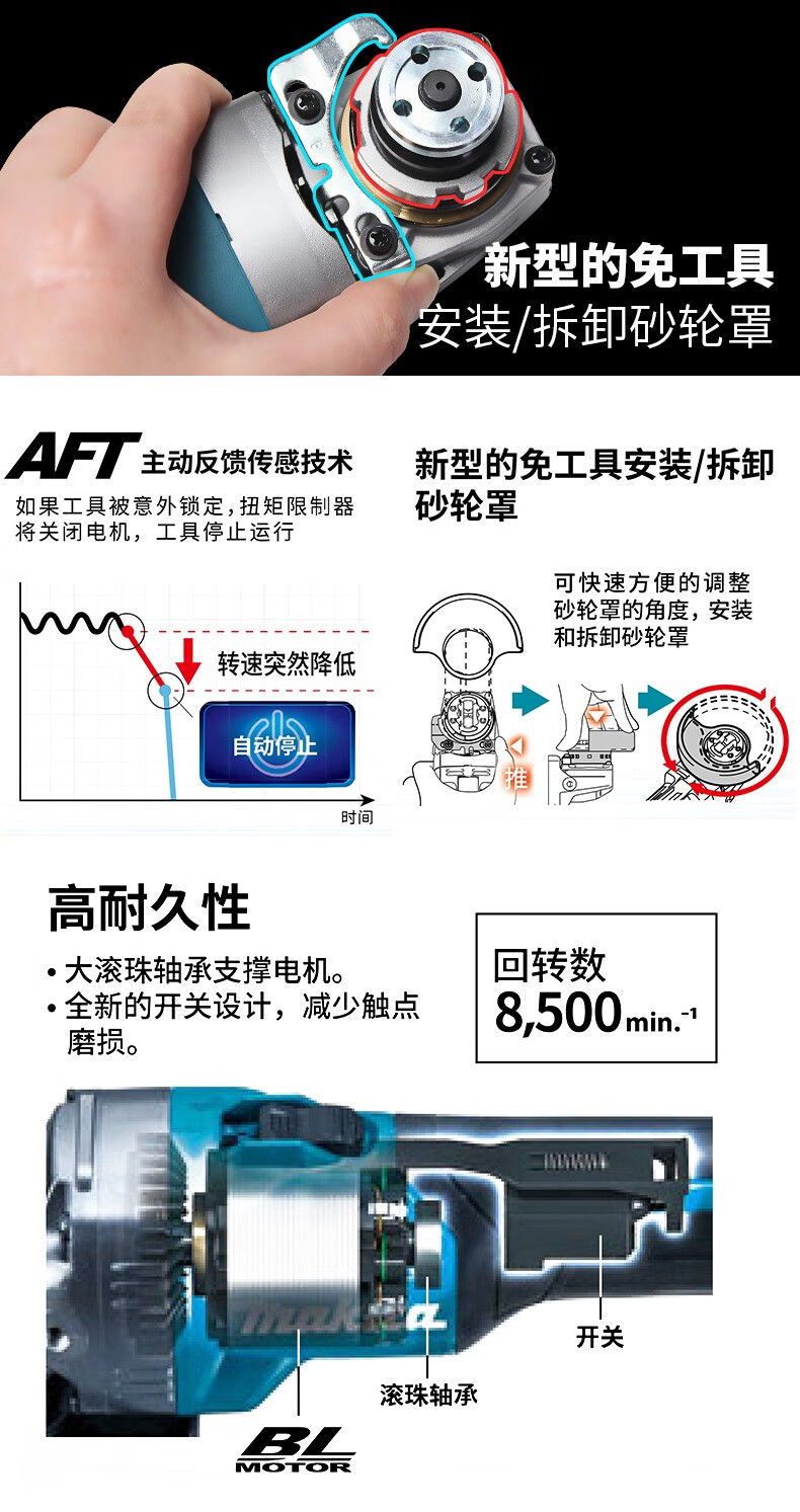 Makita GA023GZ rechargeable angle grinder cutting machine angle grinder 40V lithium battery 125mm GA023GZ 2.5AH dual battery fast charge