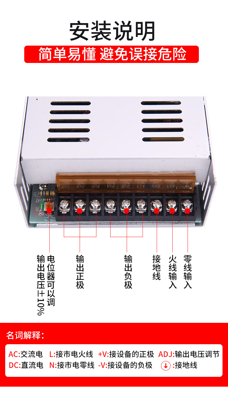 DC switching power supply 220V to D12V24V DC LED light strip monitoring and security control power supply with voltage stabilization power 120W voltage 24V current 5A