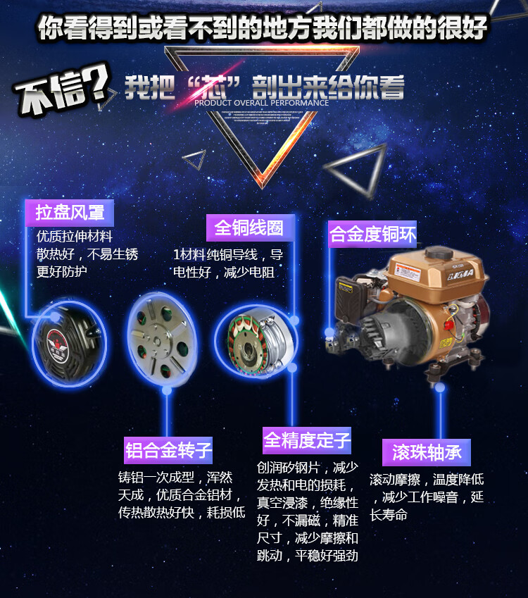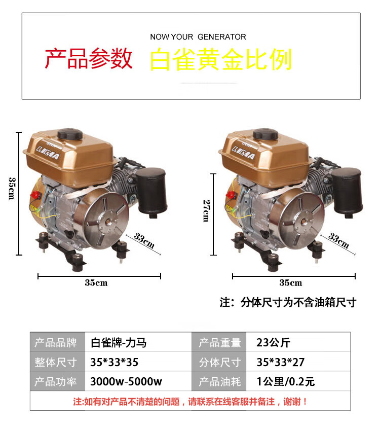 Baique brand 48v6072v electric two-wheeled, two- and three-wheeled vehicle, four-wheeled car, frequency converter range extender gasoline generator, enhanced electric start 6kw (48-72V universal model)