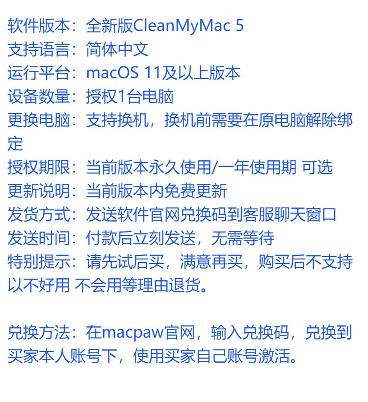 Official new CleanMyMac Apple system cleaning software activation code redemption code member deep cleaning of Mac system CleanMyMac5 enhanced version 1 unit one year authorization