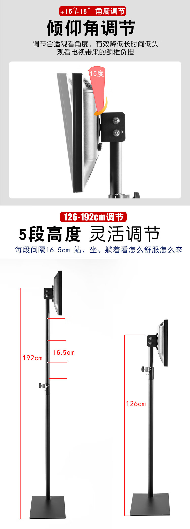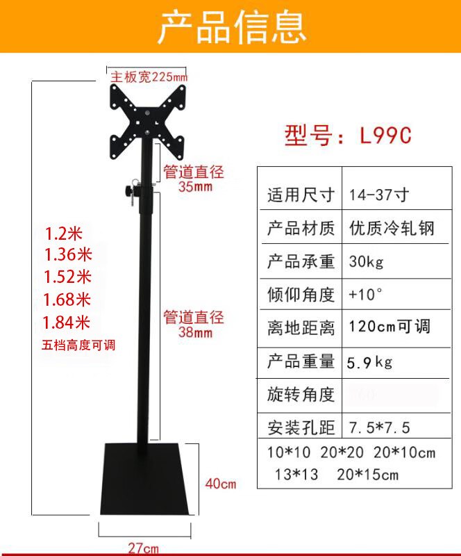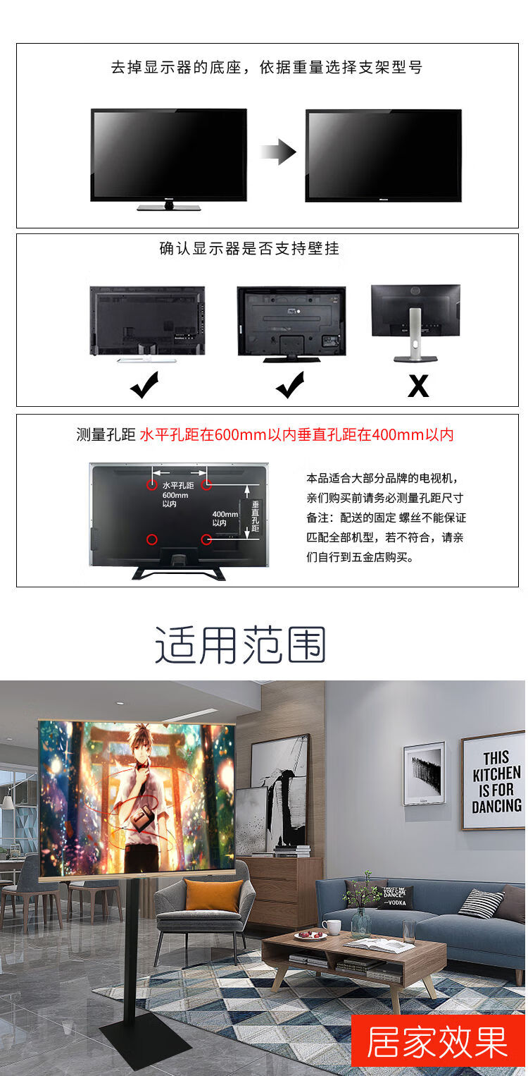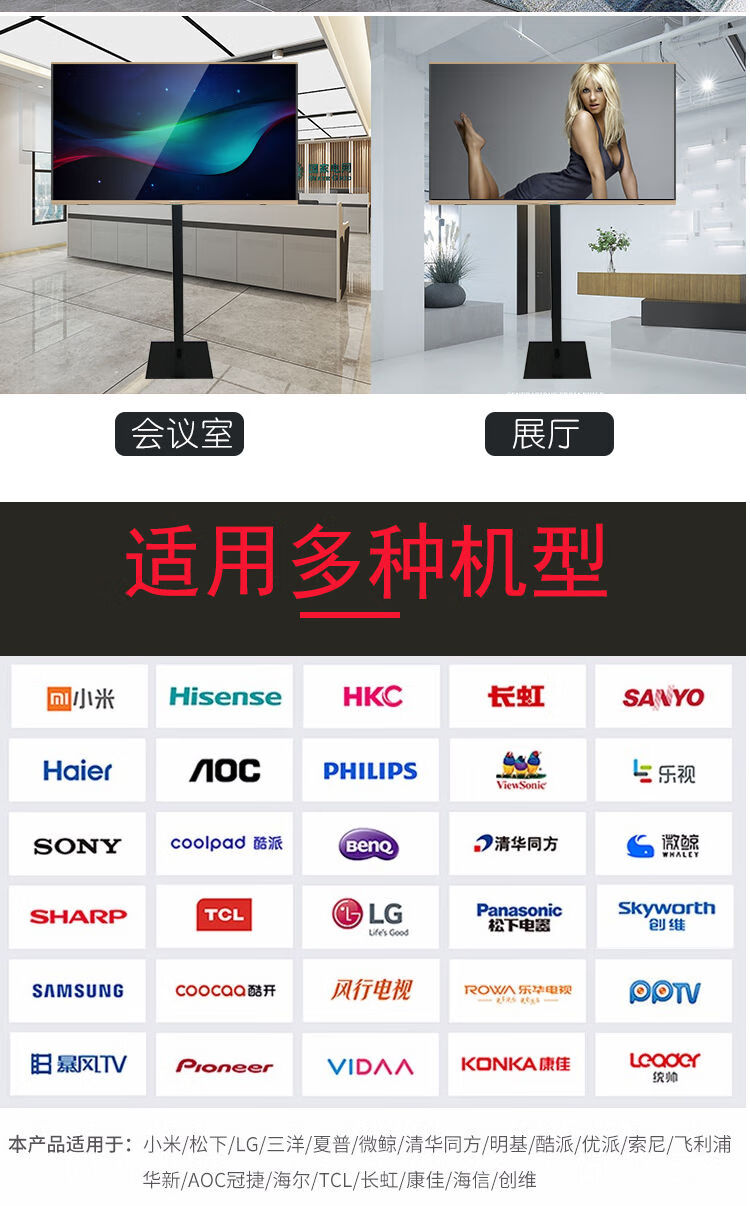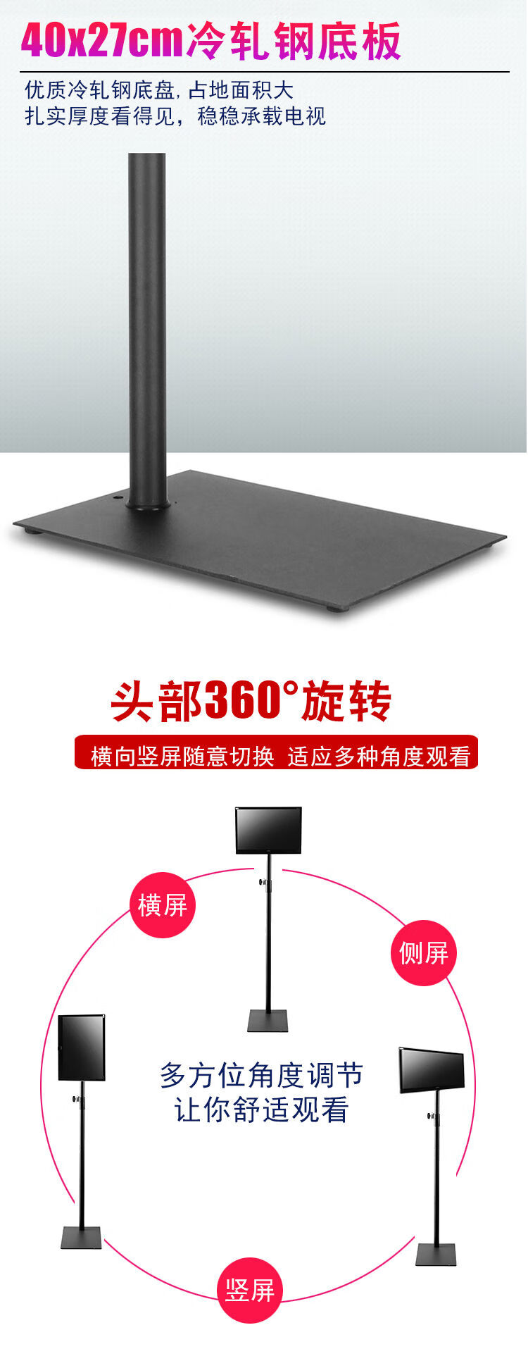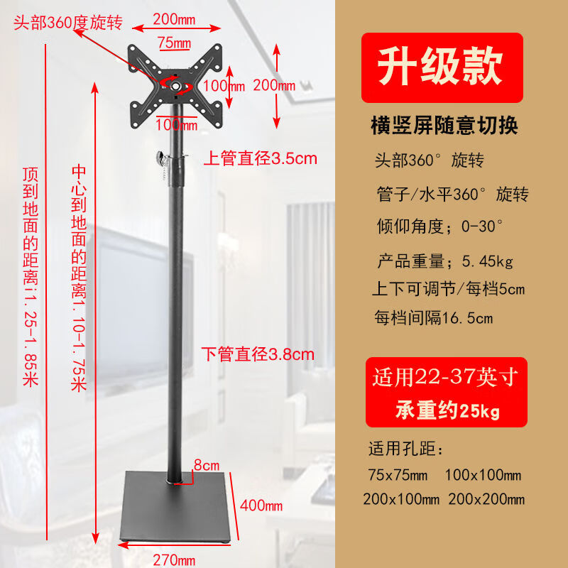CLCEY universal 14-72 inch LCD TV floor stand mobile vertical hanger base monitor stand without punching horizontal and vertical screen switching-14-32 inches-hole distance 10cm