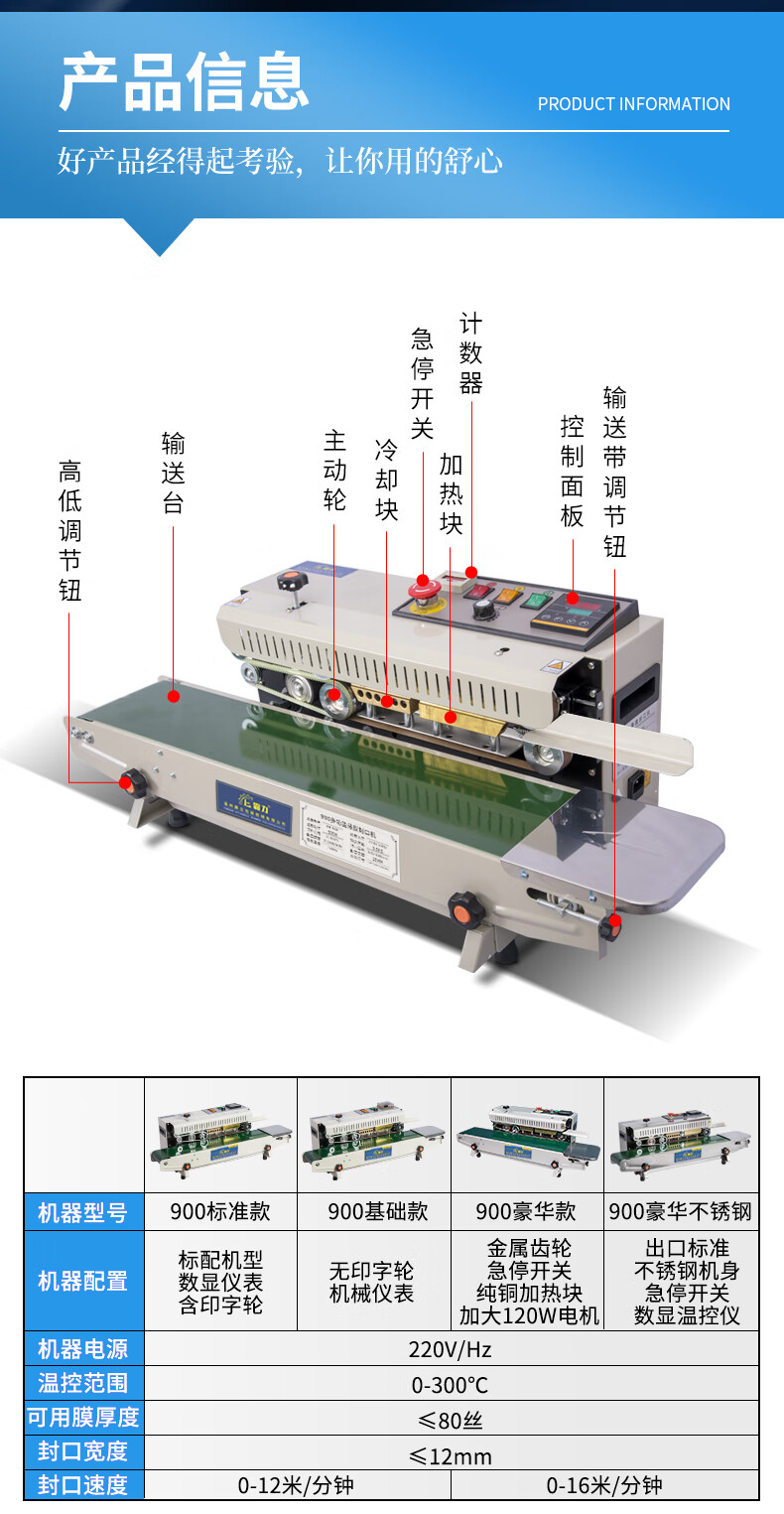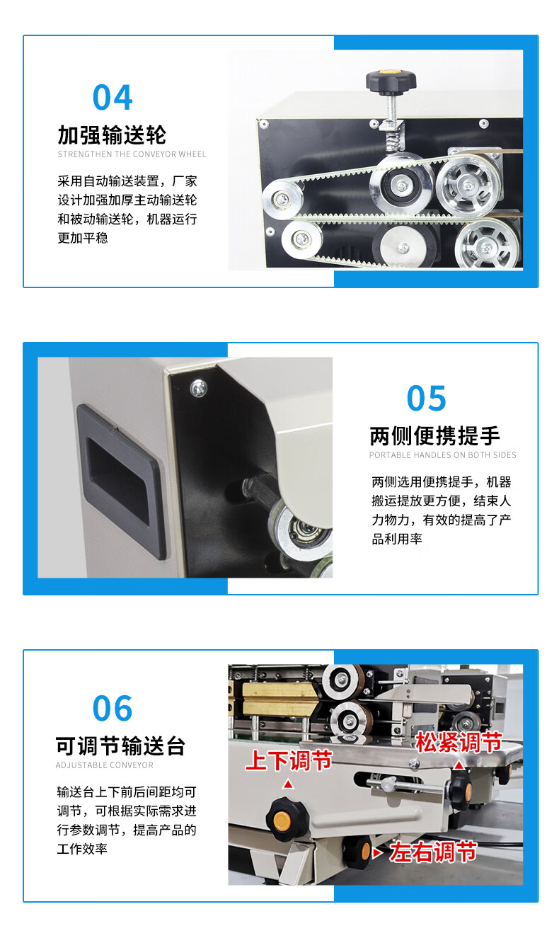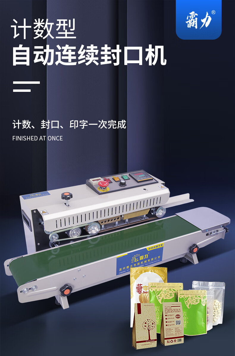 BaLiBaLi continuous sealing machine commercial automatic sealing machine fully automatic with date printing tea heat sealing machine small film aluminum foil packaging machine food packaging bag plastic bag belt 990 counting type (photoelectric counting saves manual inventory) 400m