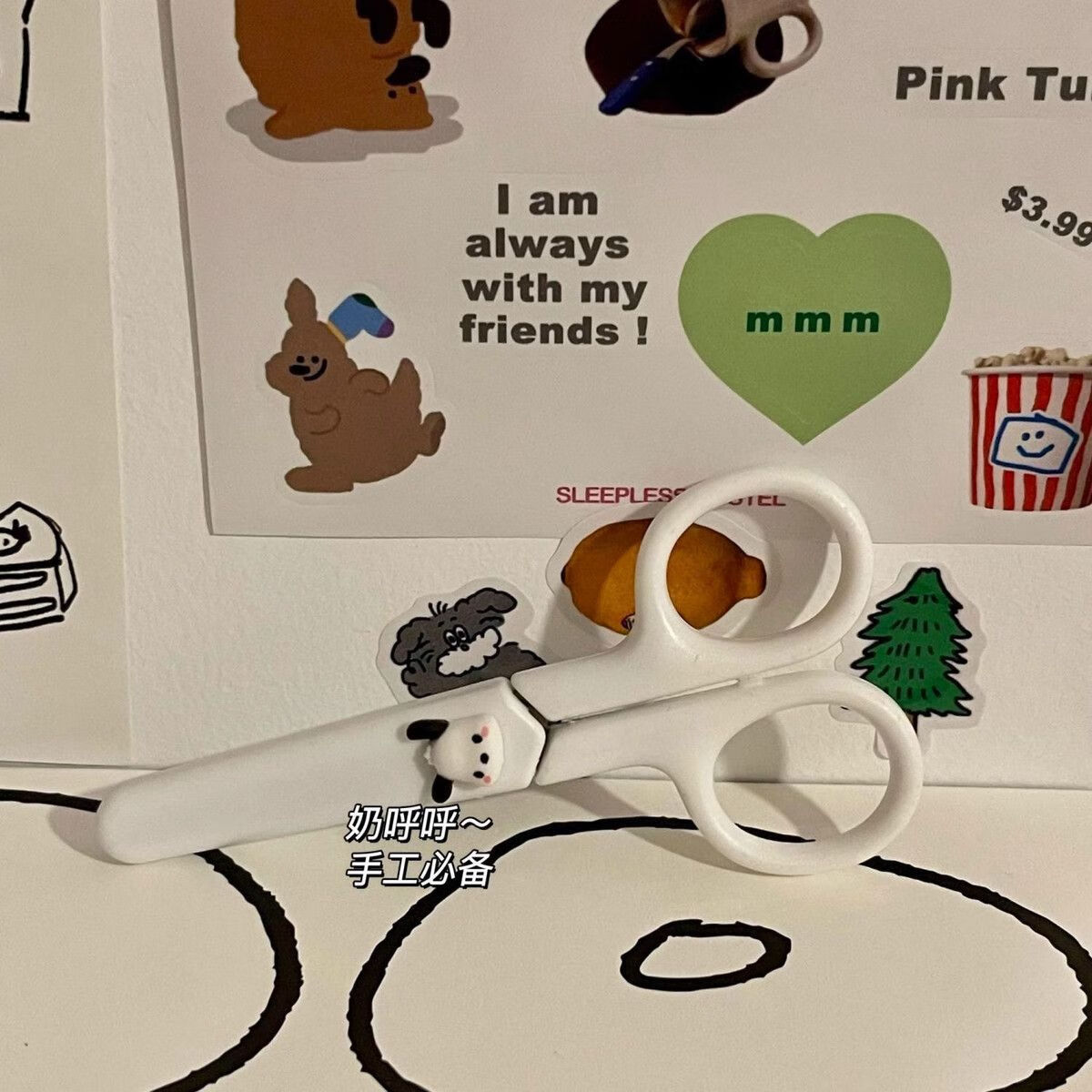 Ins creative cartoon scissors cute pacha dog girl heart utility knife student handmade dual-purpose scissors two-in-one portable cold white scissors-white pacha dog style-1 piece