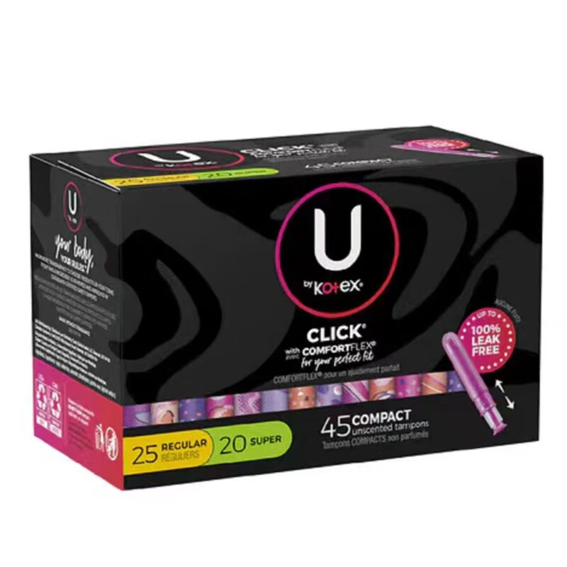 Kotex imported ~ American Kotex tampons with built-in Click plastic short tube for swimming, 50 pieces of pads 15.5cm
