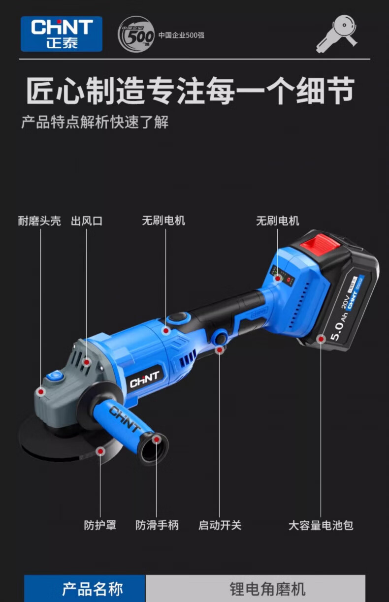 Chint (CHNT) brushless lithium angle grinder rechargeable grinder multi-function cutting machine polisher polisher hand grinder GS0M-100B/200 without battery charger