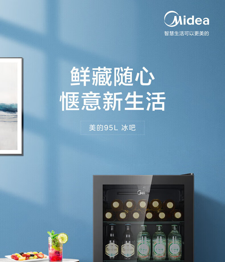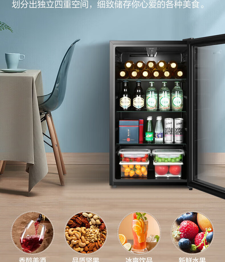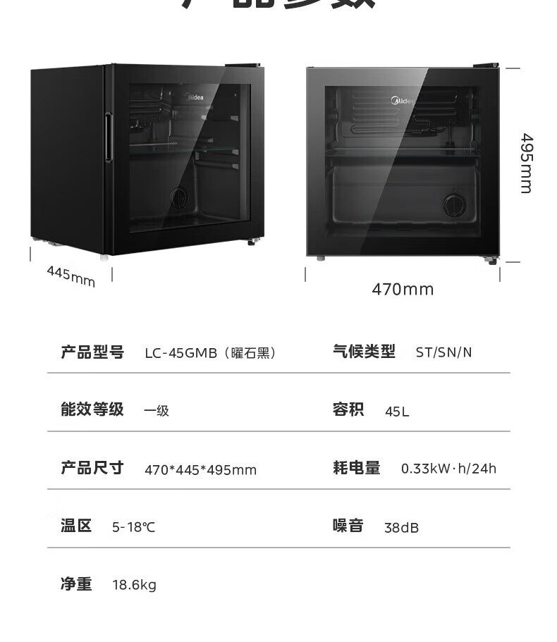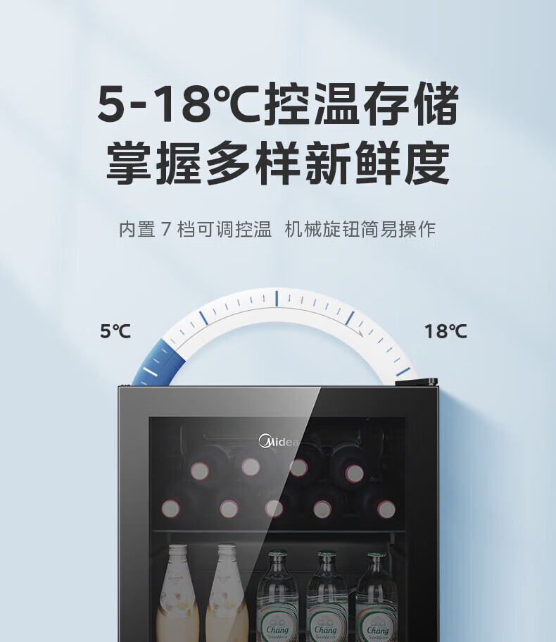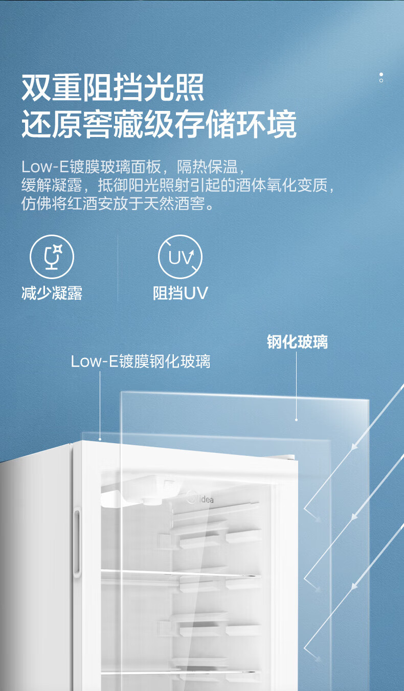 Midea Home Small Freezer 45L/95L Freezer Red Wine Ice Bar Cabinet Fresh Cabinet Living Room Vertical Glass Office Freezer First-Class Energy Saving Bass Smart Wine Cabinet High Cost-Effectiveness Electronic Temperature Control 140L JC-140GEM
