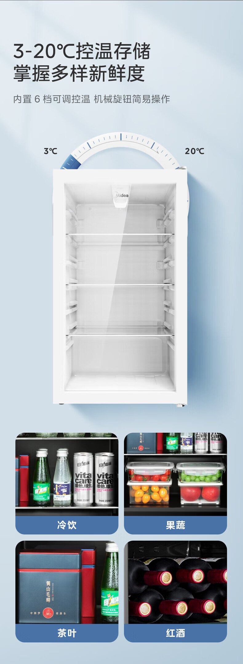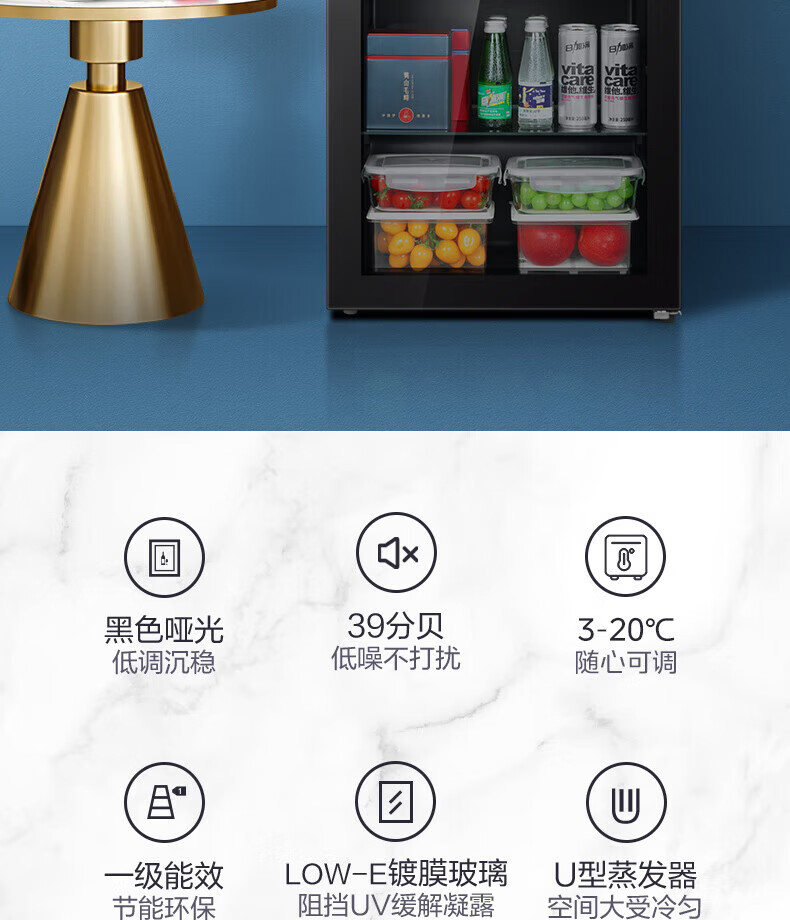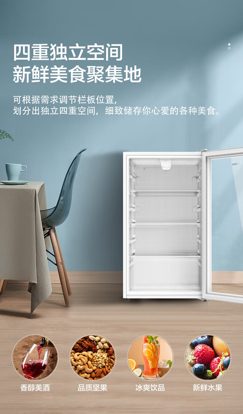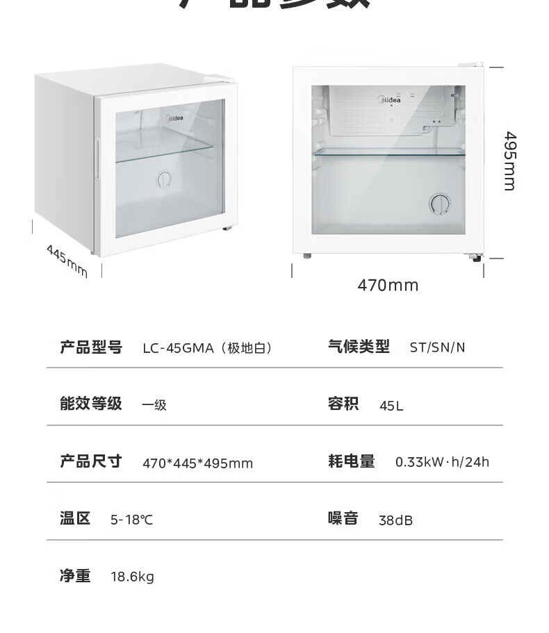 Midea Home Small Freezer 45L/95L Freezer Red Wine Ice Bar Cabinet Fresh Cabinet Living Room Vertical Glass Office Freezer First-Class Energy Saving Bass Smart Wine Cabinet High Cost-Effectiveness Electronic Temperature Control 140L JC-140GEM