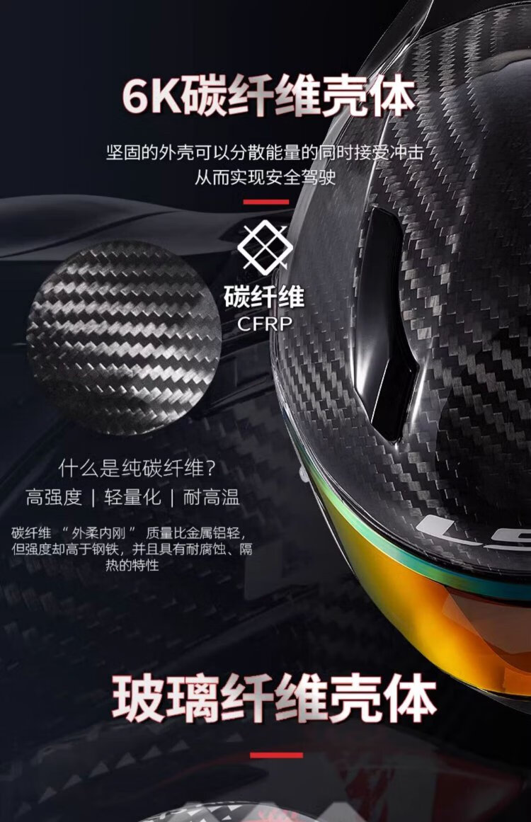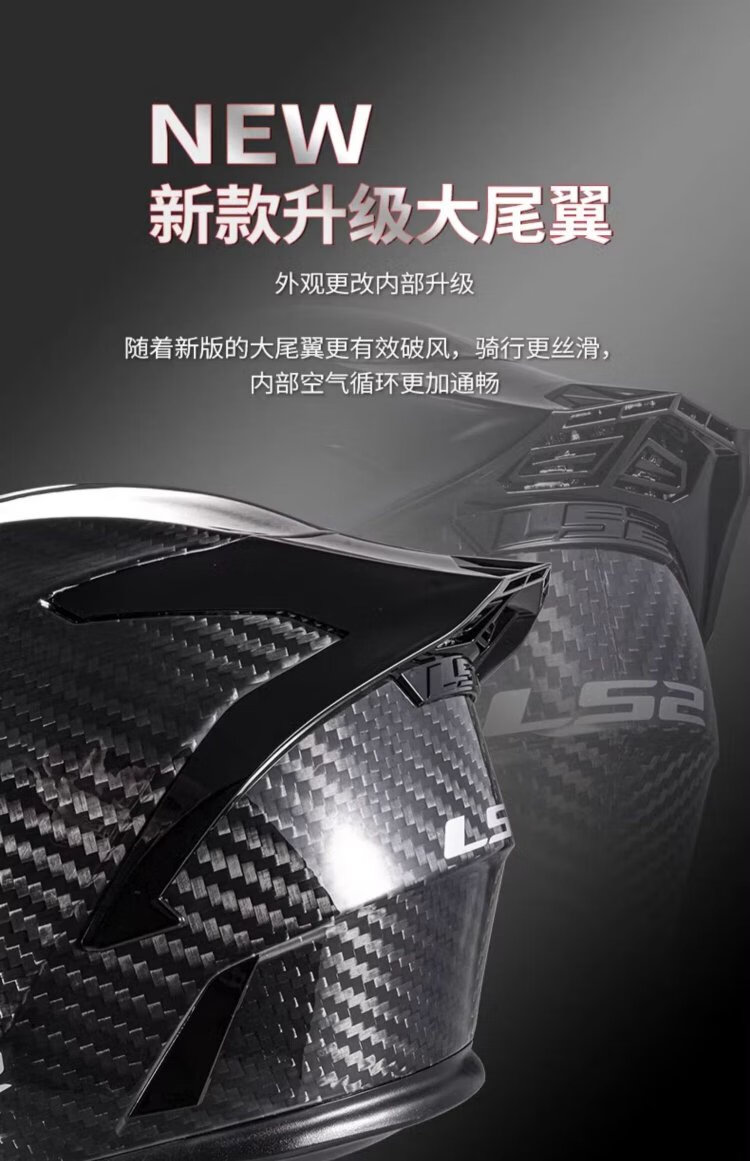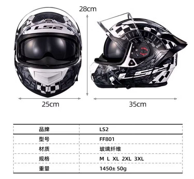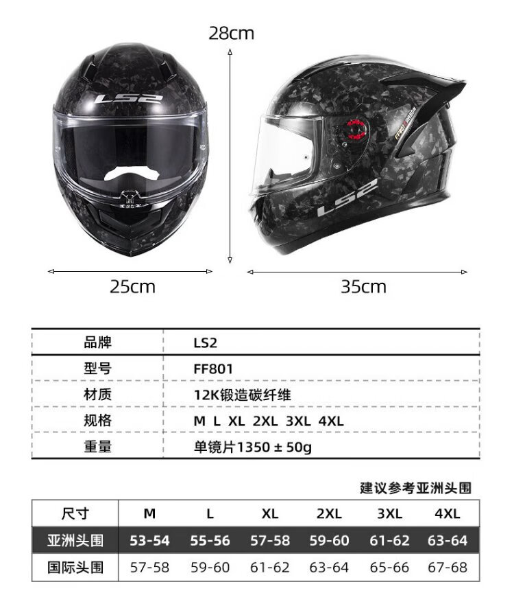 LS2 motorcycle helmet carbon fiber men's and women's motorcycle racing all-season full-face helmet winter anti-fog large tail FF801 801 helmet + Vimeton V10S (combination package is more discounted) L (55-56 head circumference)