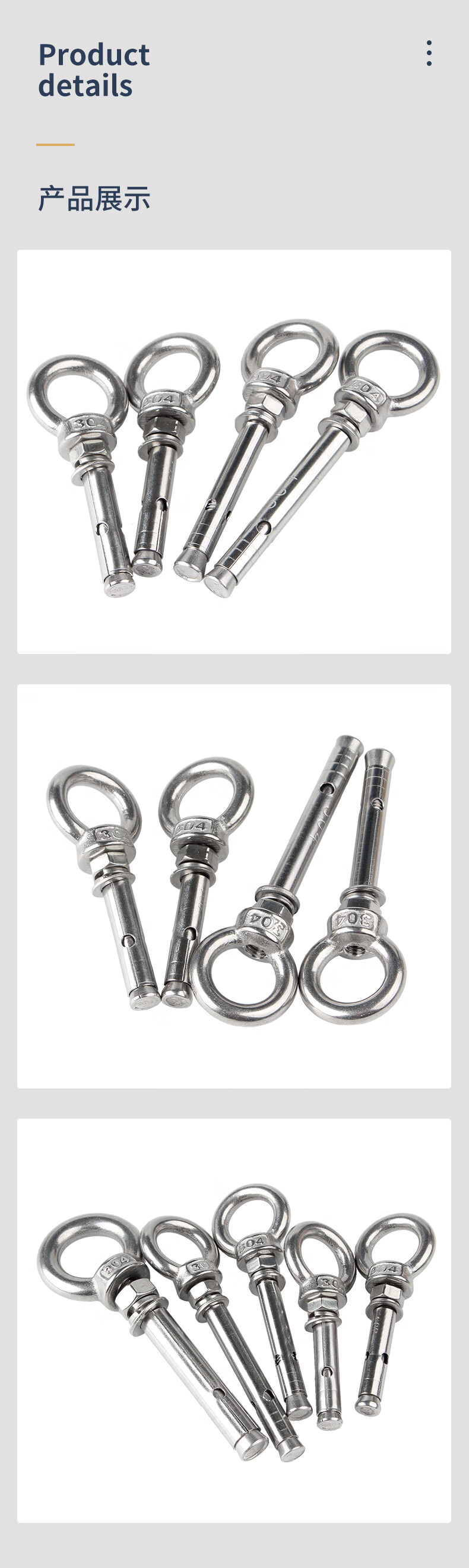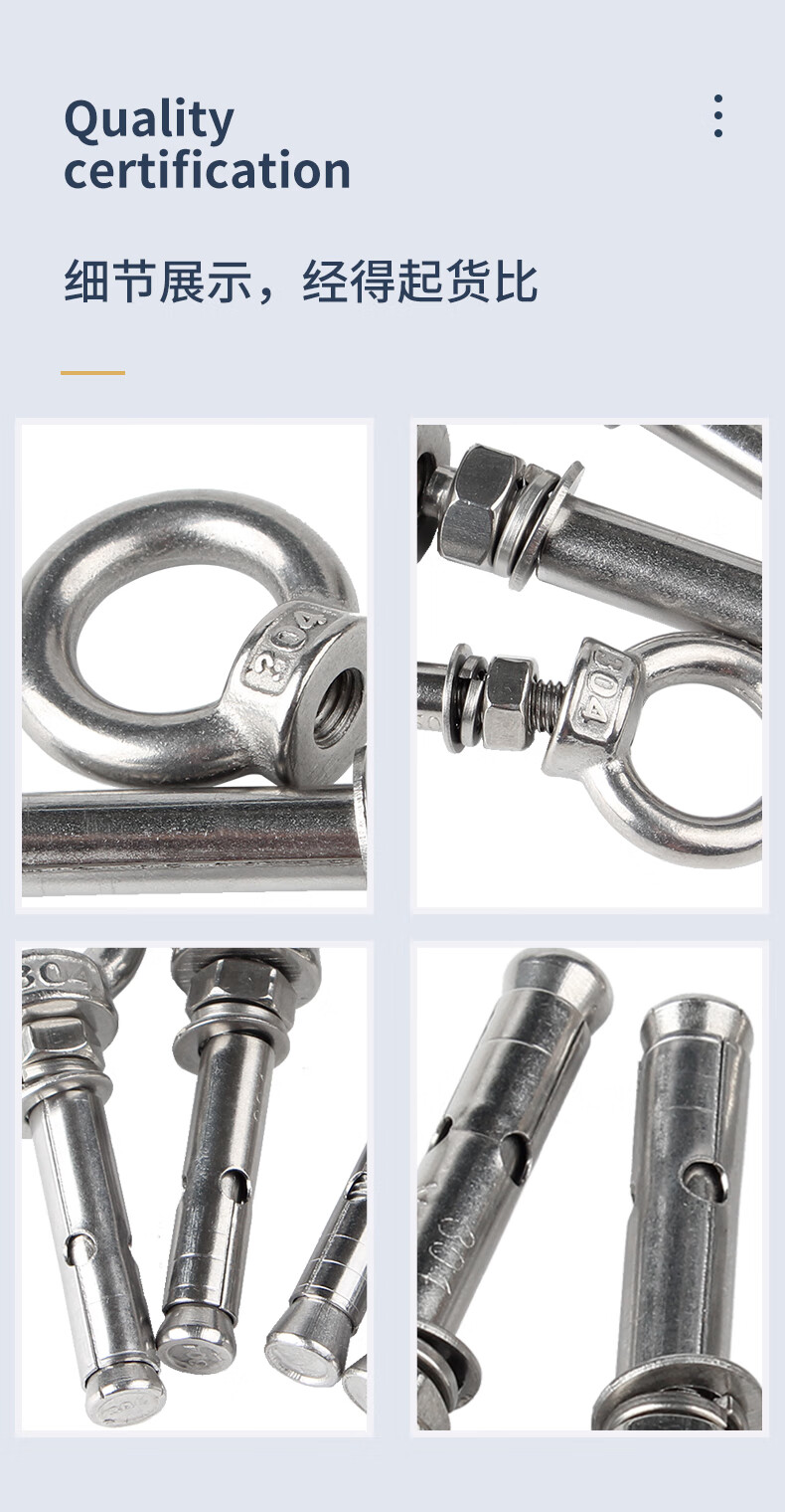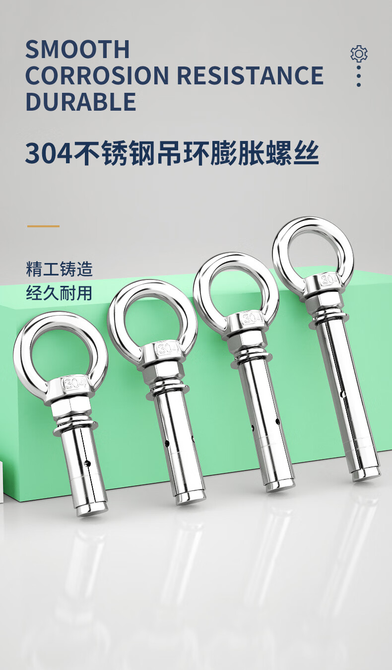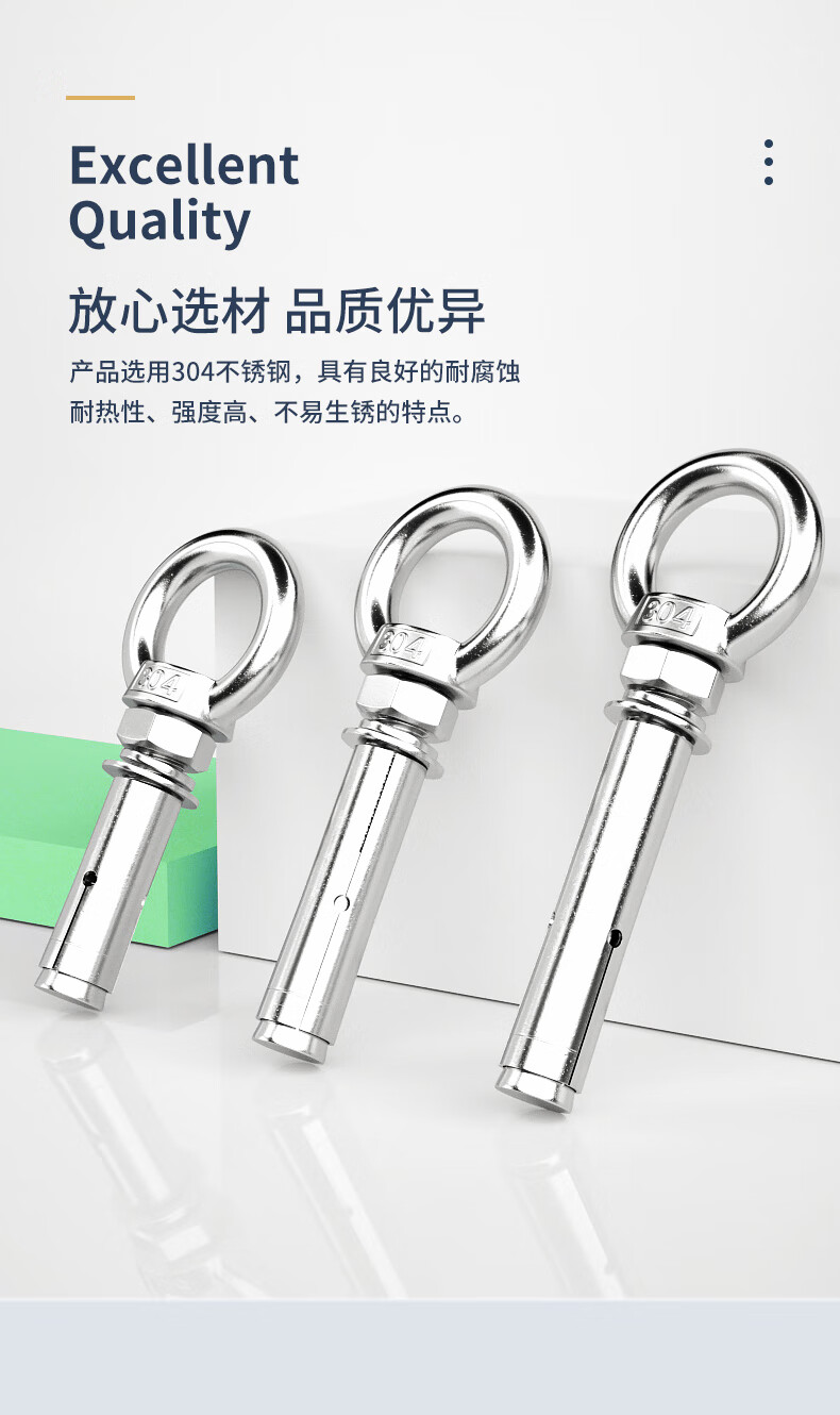 Guwanji M6M8-M20 304 stainless steel expansion screw with ring hook with ring extended universal lifting eye expansion bolt M6x50 (304 lifting ring) 2 pieces