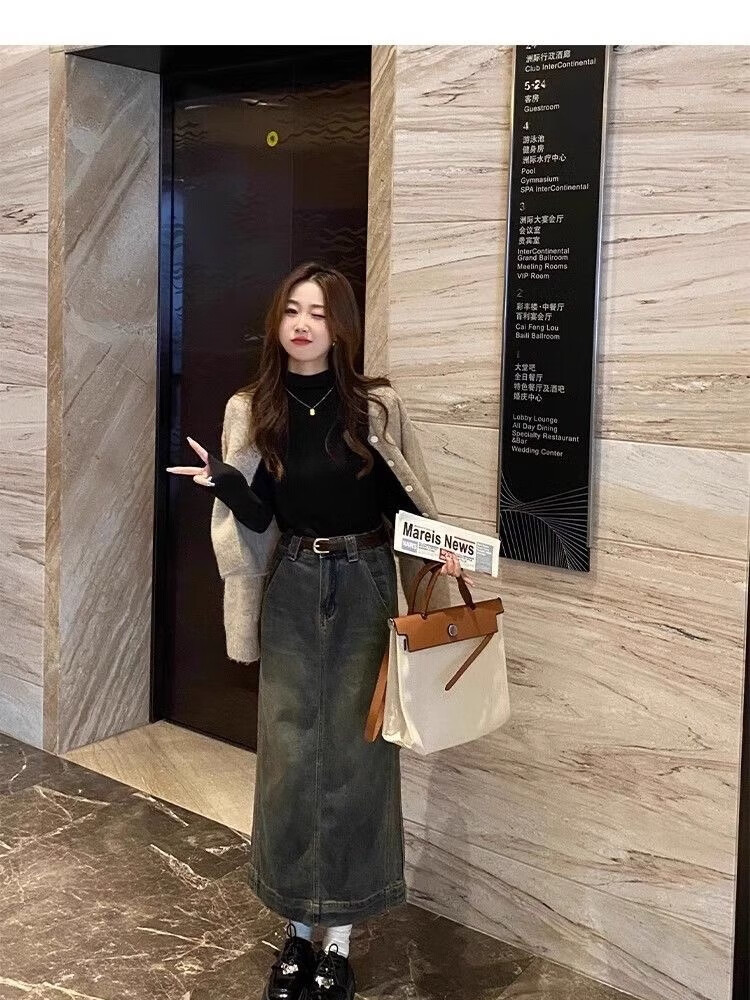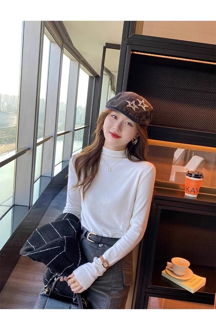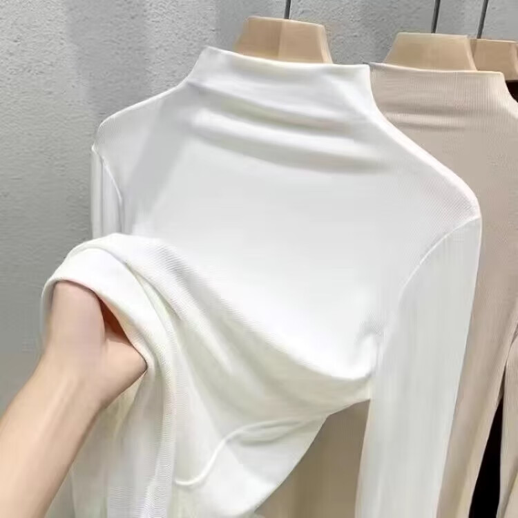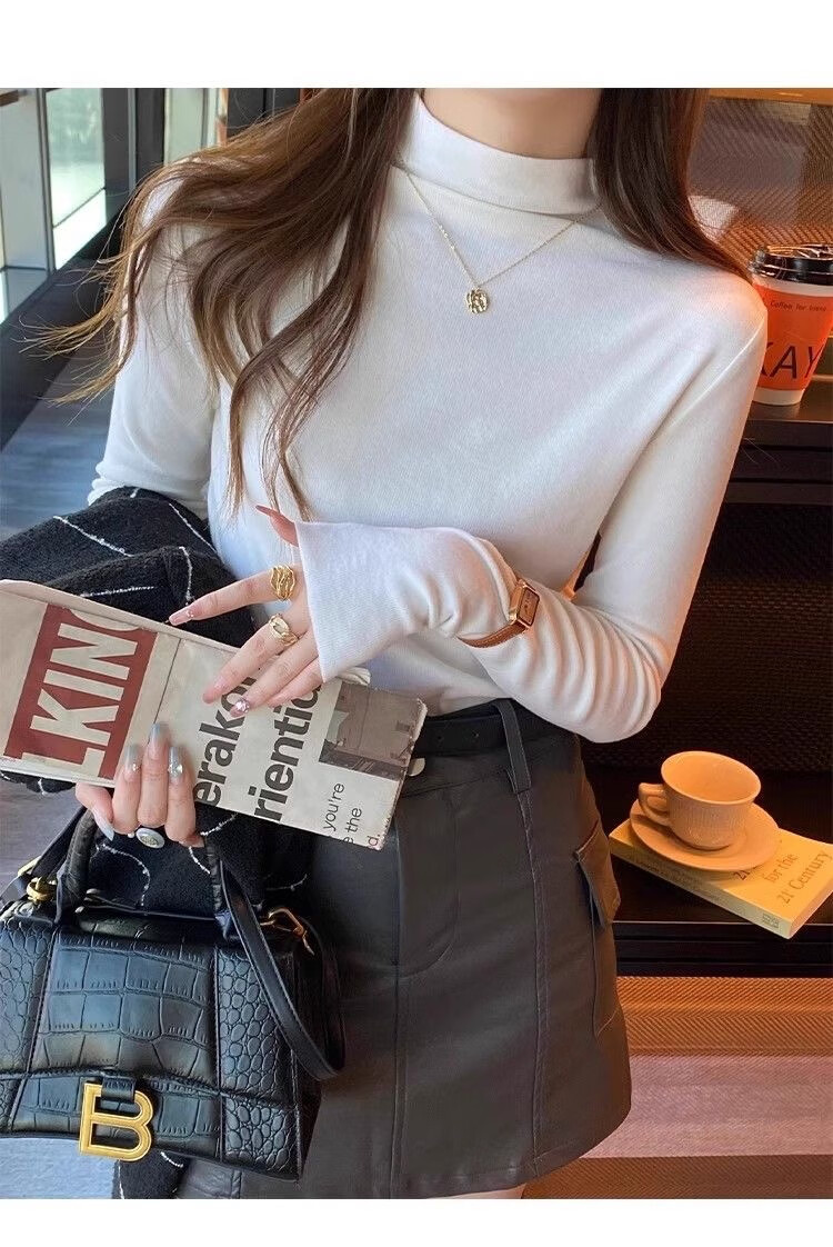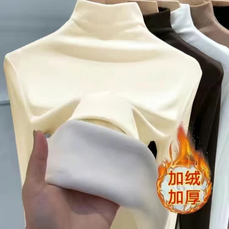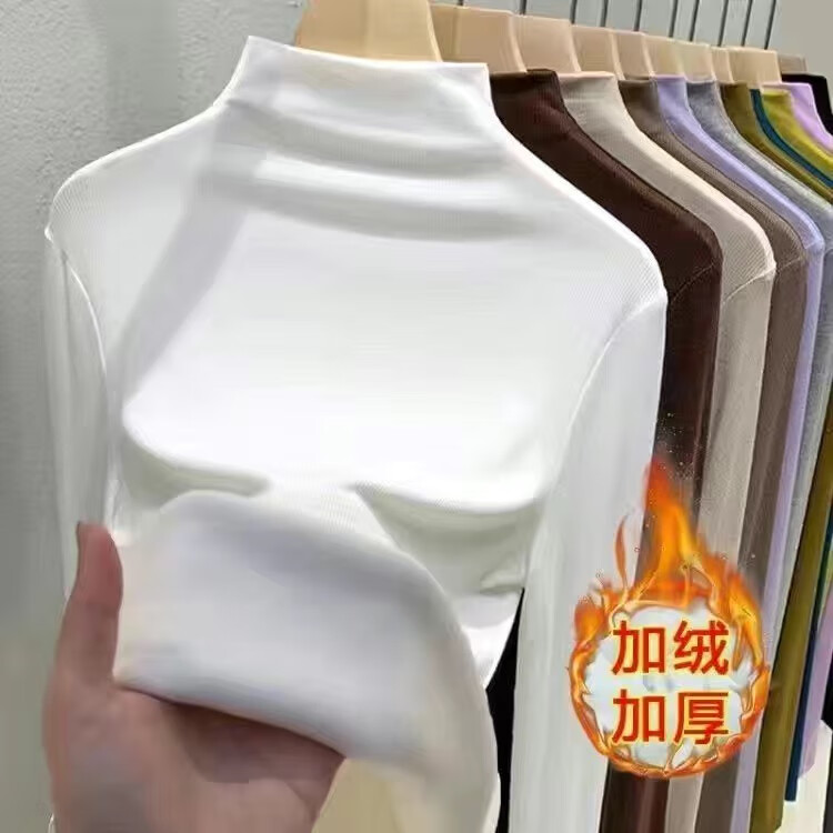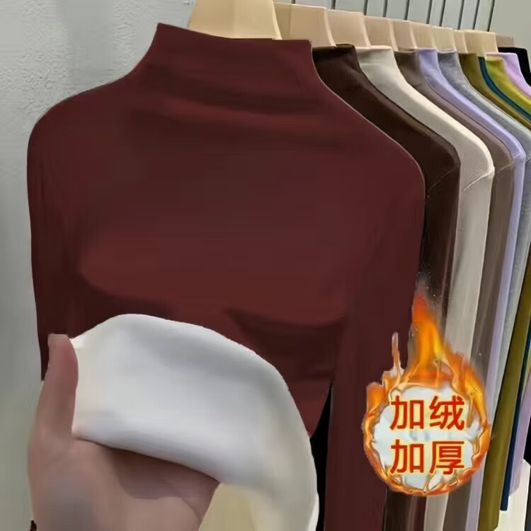 Isenini half turtleneck bottoming shirt for women 2025 autumn and winter new style velvet thickened warm inner top long-sleeved T-shirt velvet black XL recommended 110-120 catties