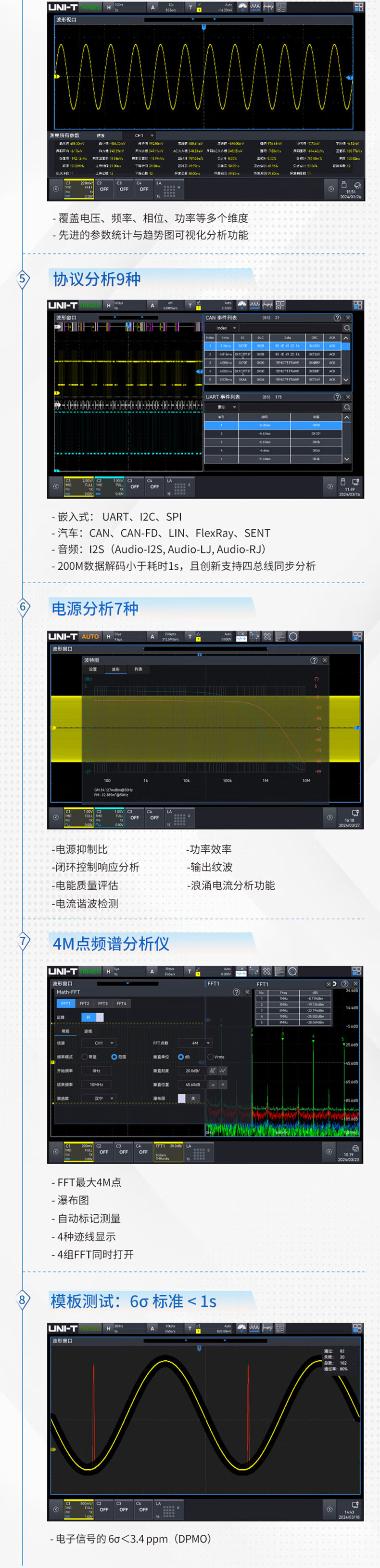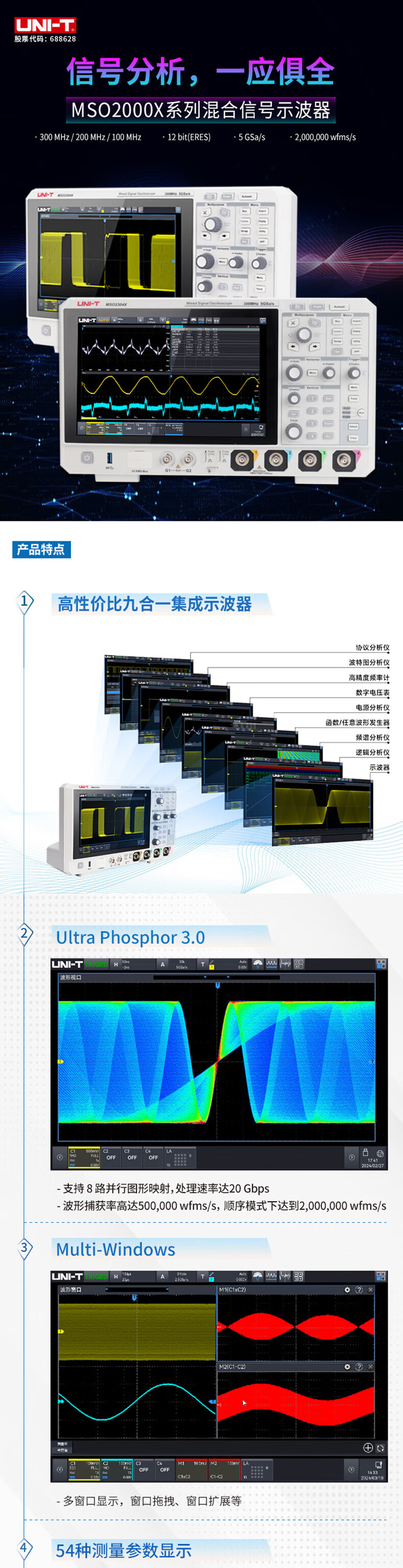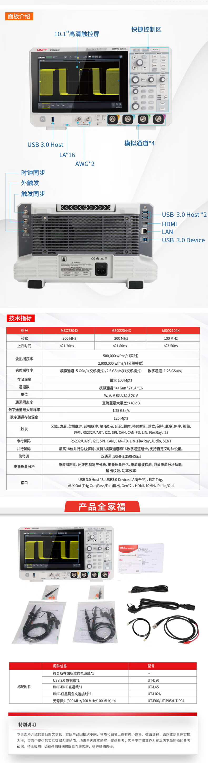 Unilide MSO2104X digital oscilloscope touch screen voltmeter signal generator spectrum analysis nine-in-one multi-function MSO2304X touch screen/300MHz