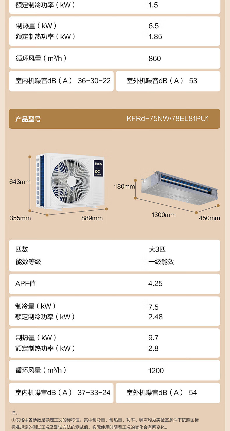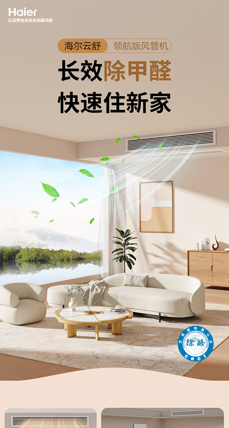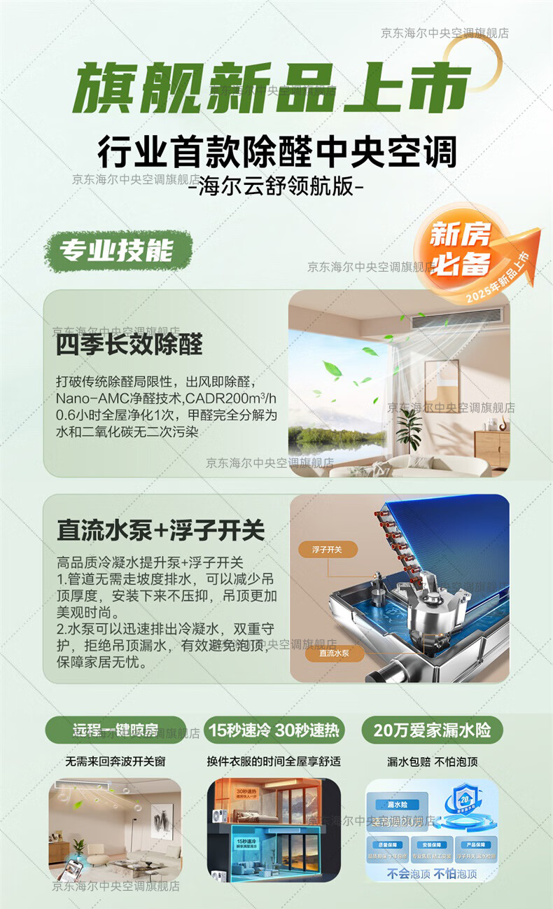 Haier has an immediate 15% discount on state subsidies. Yunshu Linghang 3 HP duct machine, one-to-one formaldehyde removal central air conditioner, a new level of energy efficiency, embedded 3p standard water pump to prevent water leakage. Yunshu 1.5 HP Linghang DC water pump + long-term formaldehyde removal