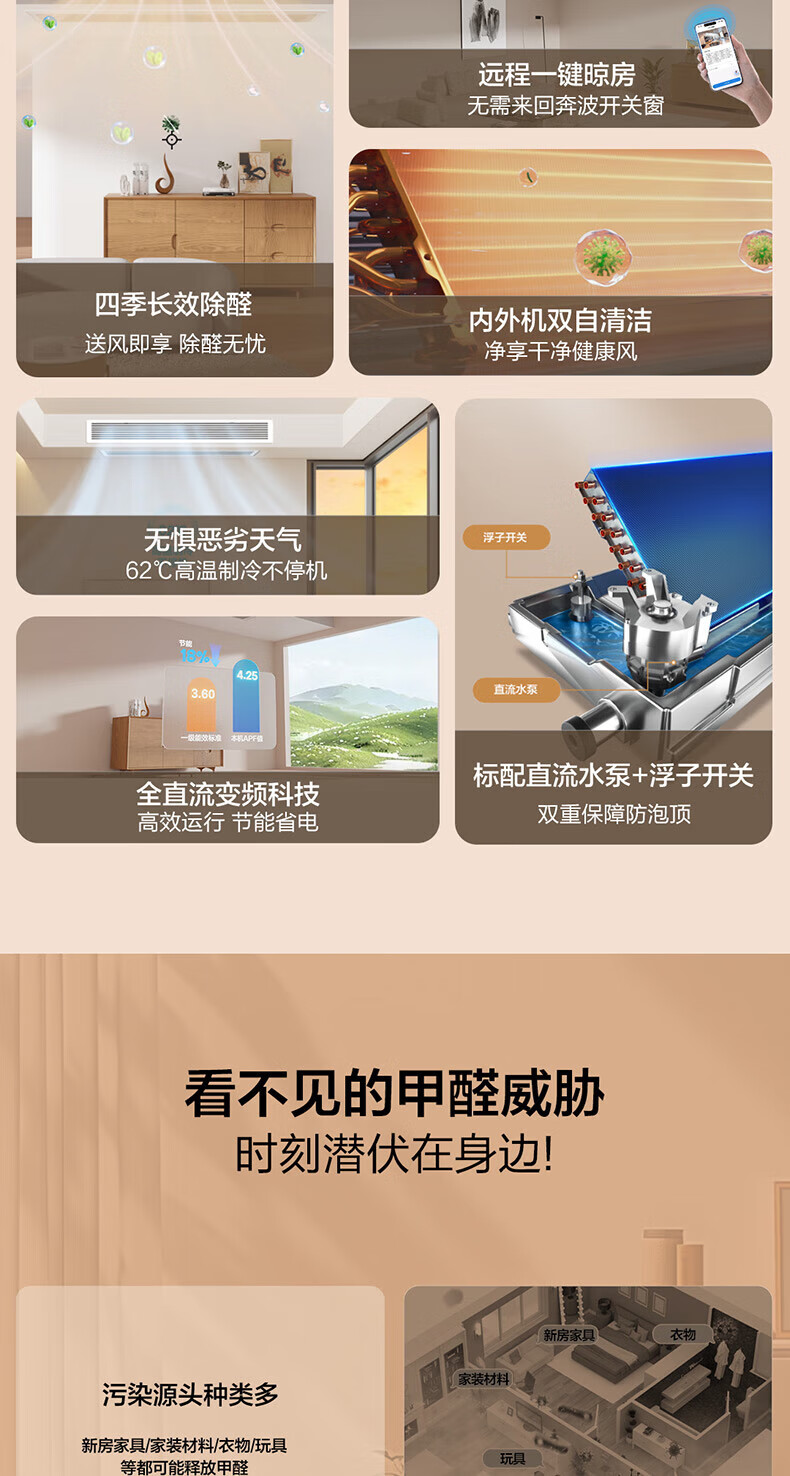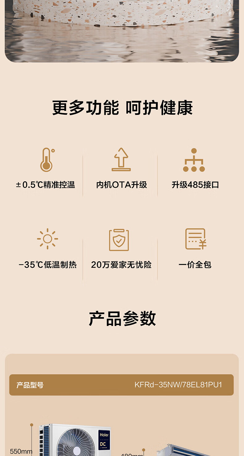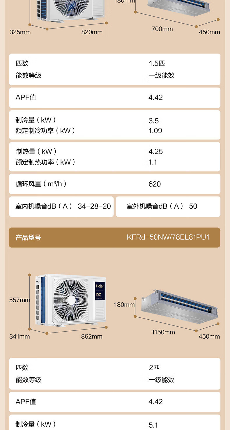Haier has an immediate 15% discount on state subsidies. Yunshu Linghang 3 HP duct machine, one-to-one formaldehyde removal central air conditioner, a new level of energy efficiency, embedded 3p standard water pump to prevent water leakage. Yunshu 1.5 HP Linghang DC water pump + long-term formaldehyde removal