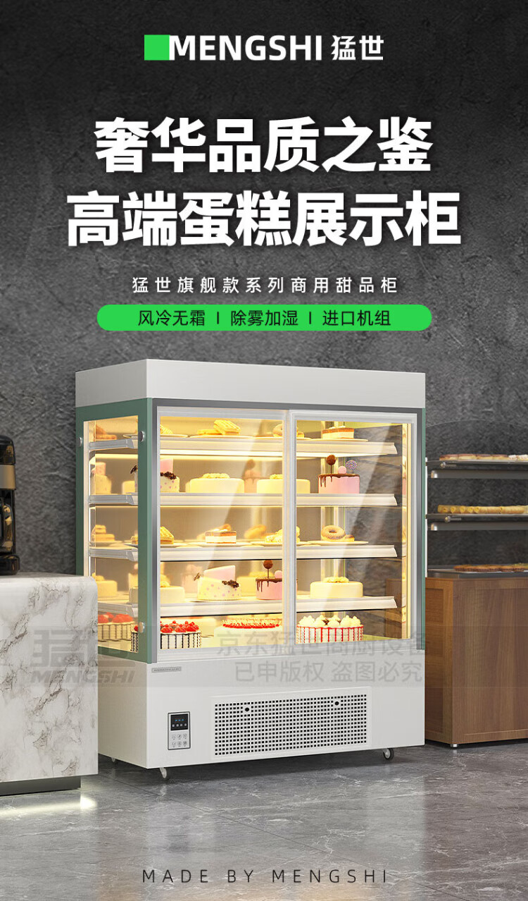 Mengshi Cake Cabinet Cake Display Cabinet Refrigerated Vertical Heightened Commercial Air-cooled Frost-Free Refrigerator Fruit Fresh Cabinet Dessert Flower Cabinet Flagship Model 2.0 Meter Floor-standing丨Customized Air Vent