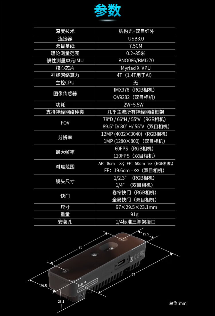 OAK China OAK-D-Pro structured light infrared artificial intelligence binocular depth camera face recognition AF version auto focus model
