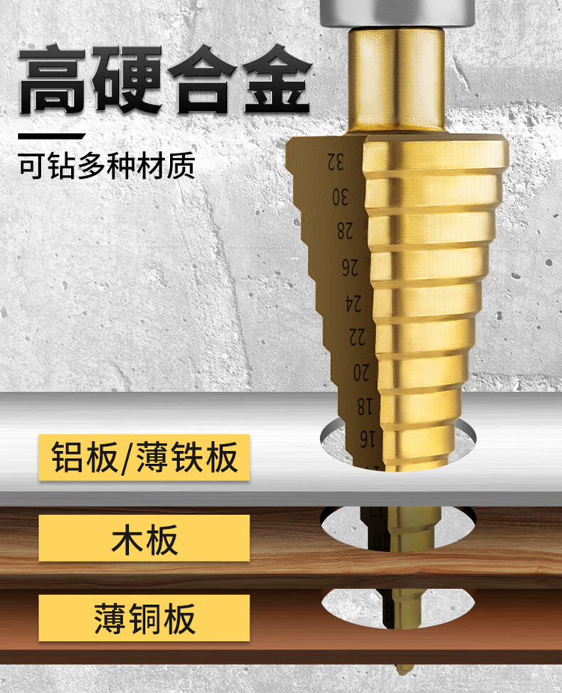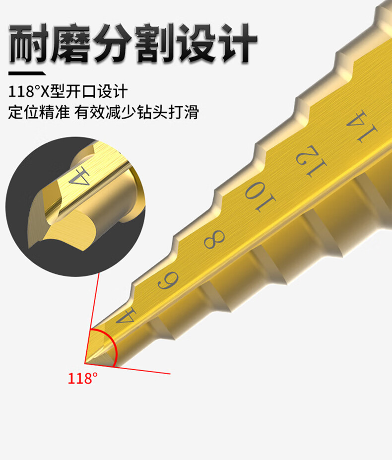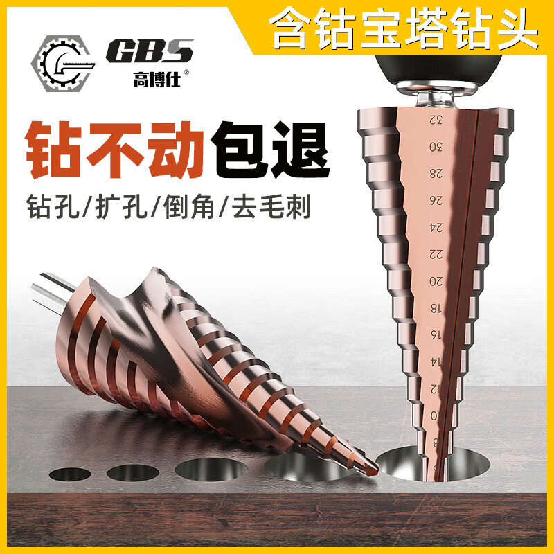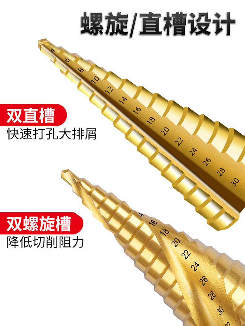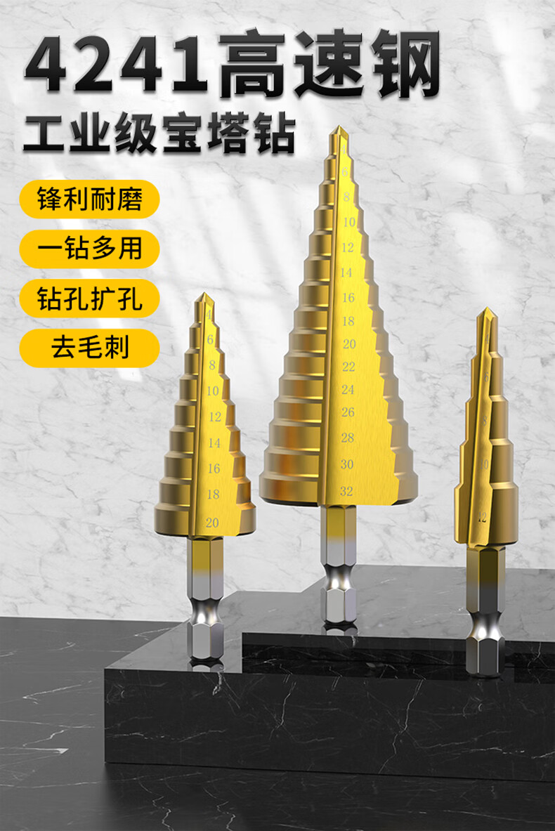Gobos conical electric drill pagoda drill bit containing cobalt multifunctional stainless steel hole opening artifact step drilling M35 straight groove 4-20 hardened version 4241 straight groove 4-12