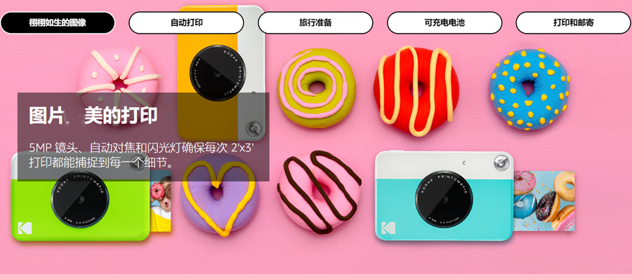KODAK Printomatic 5MP instant printing camera full color printing rechargeable gray