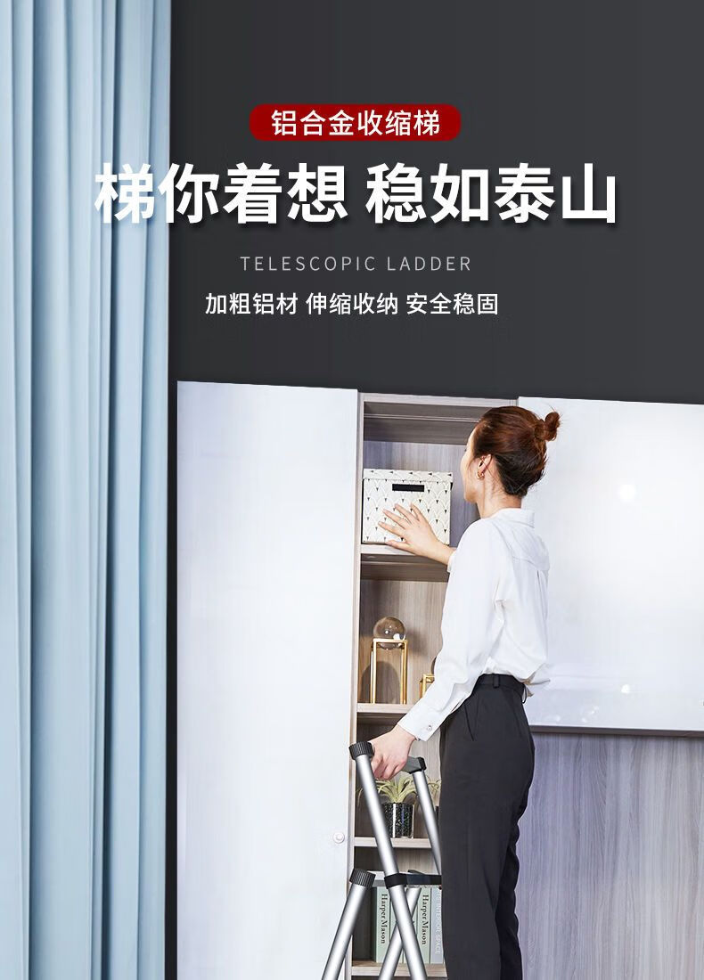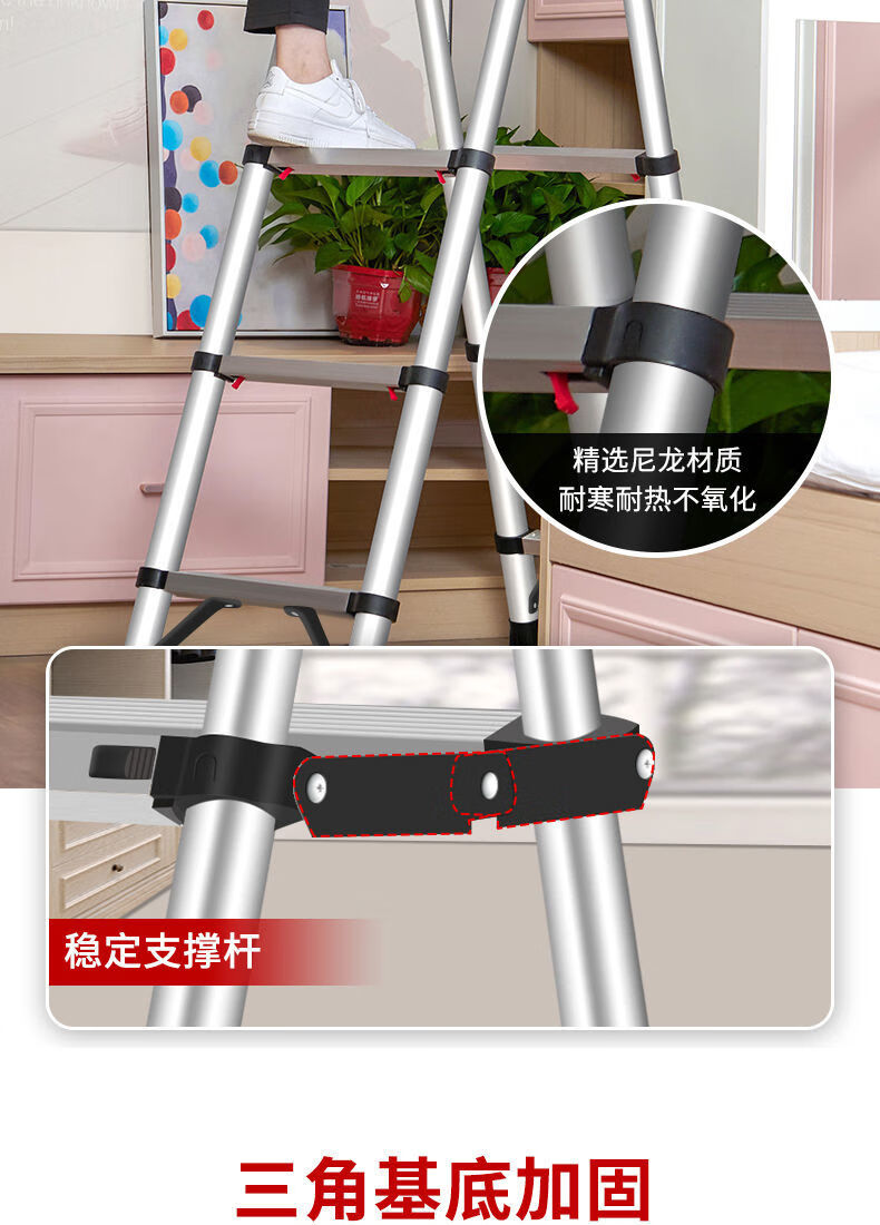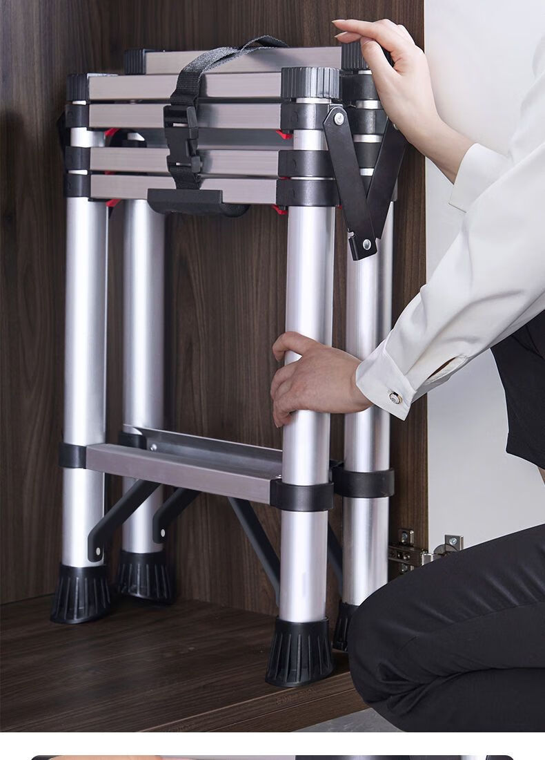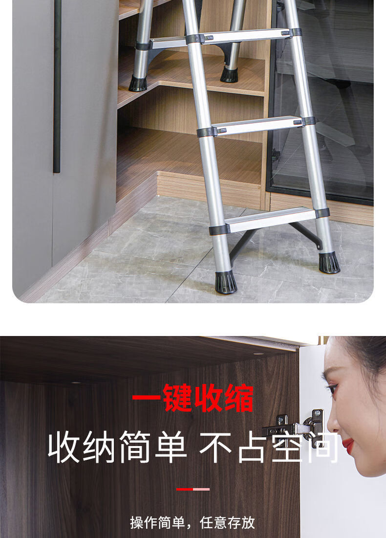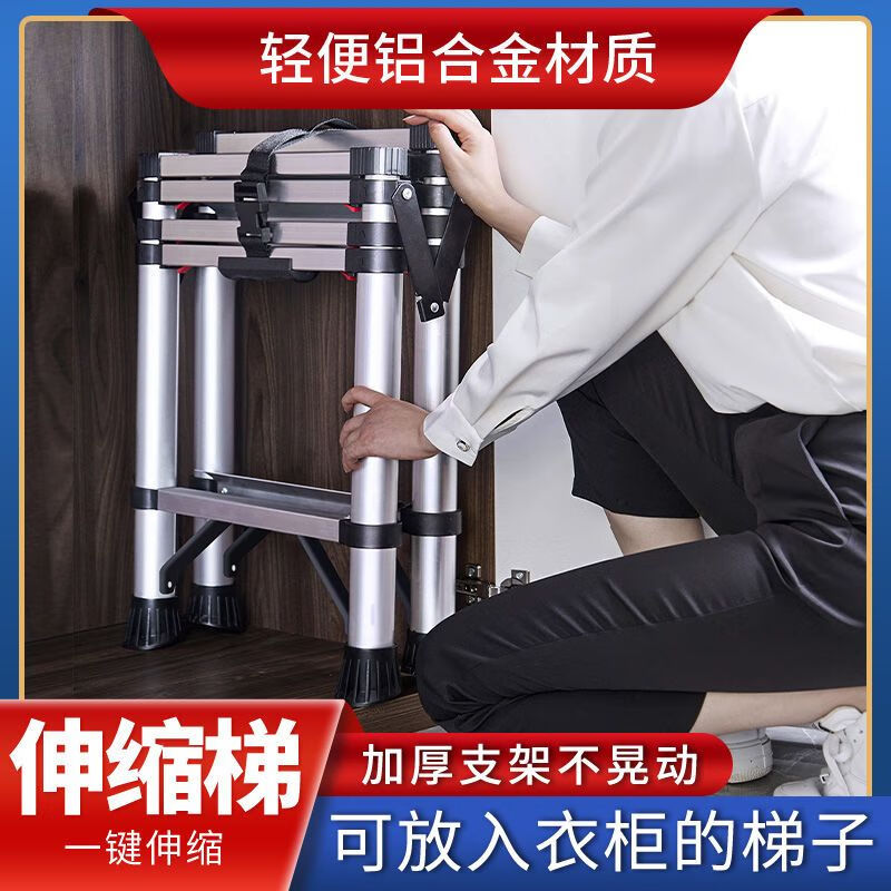 Jiangzhicheng herringbone ladder telescopic ladder thickened multi-functional aluminum alloy household ladder engineering folding staircase industrial grade ladder multi-key retractable five-step ladder thickened aluminum tube