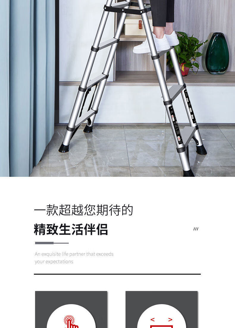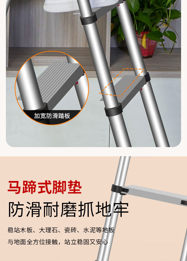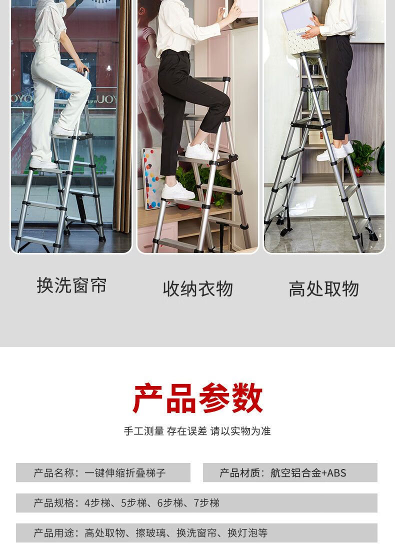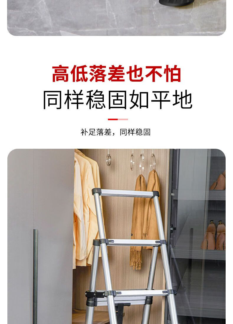 Jiangzhicheng herringbone ladder telescopic ladder thickened multi-functional aluminum alloy household ladder engineering folding staircase industrial grade ladder multi-key retractable five-step ladder thickened aluminum tube