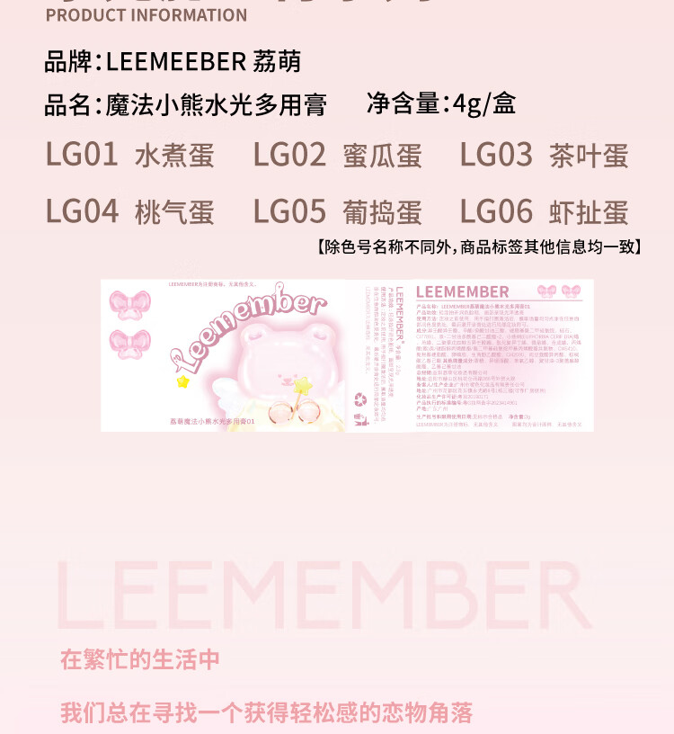Limeng Leemember Limeng Blush Cream Bear Water Light Multi-purpose Cream Expansive Color Low Saturation Repair and Brighten Face LG07 Green Apple