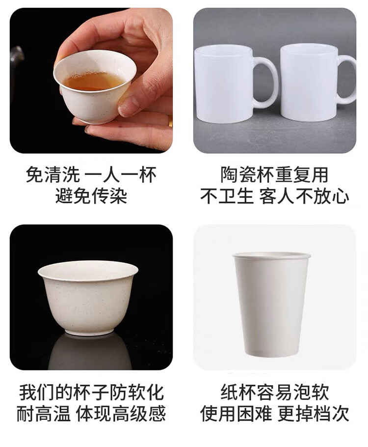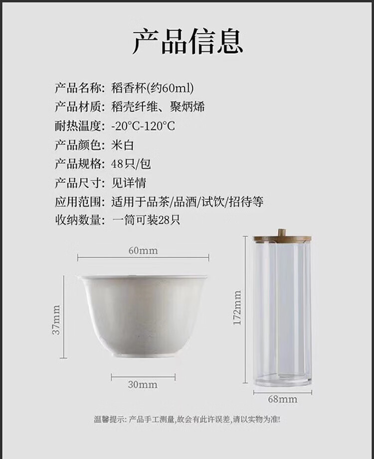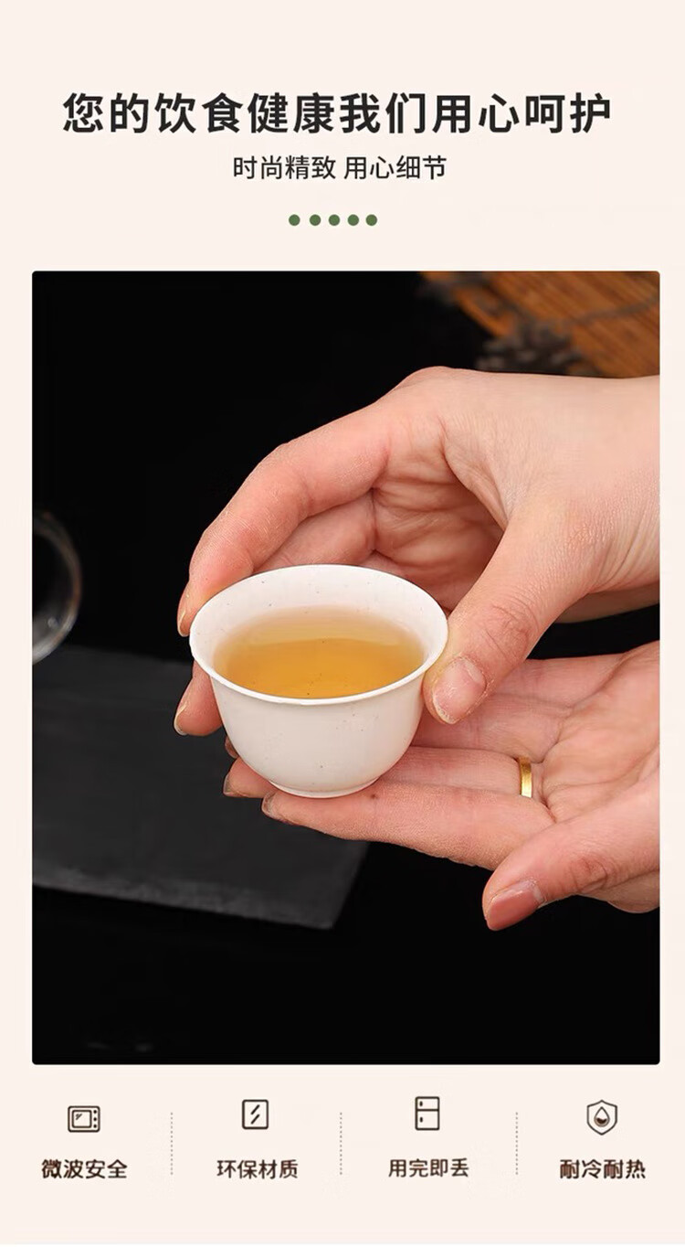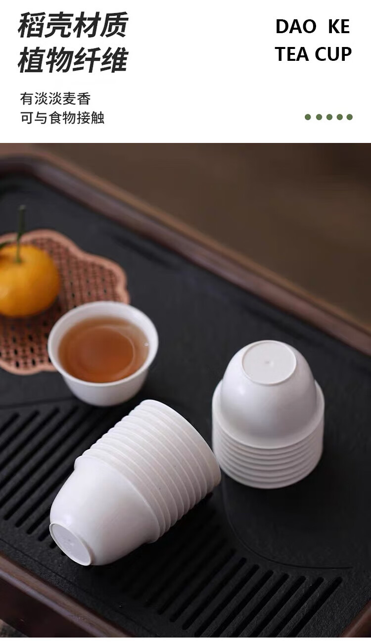 Jingkodi rice husk disposable tea cup with storage cup holder, high temperature resistance, home office, hospitality, tea tasting, environmentally friendly rice fragrance cup, thickened rice husk cup, two packs of 100, about 60ml