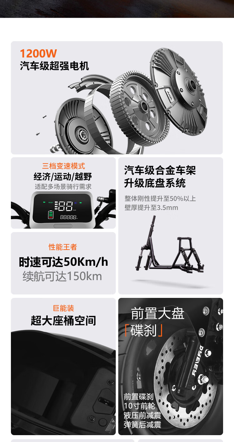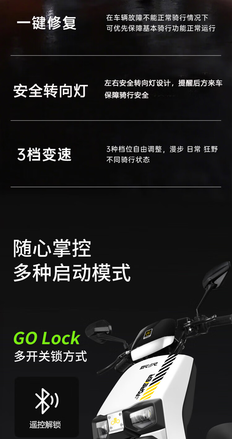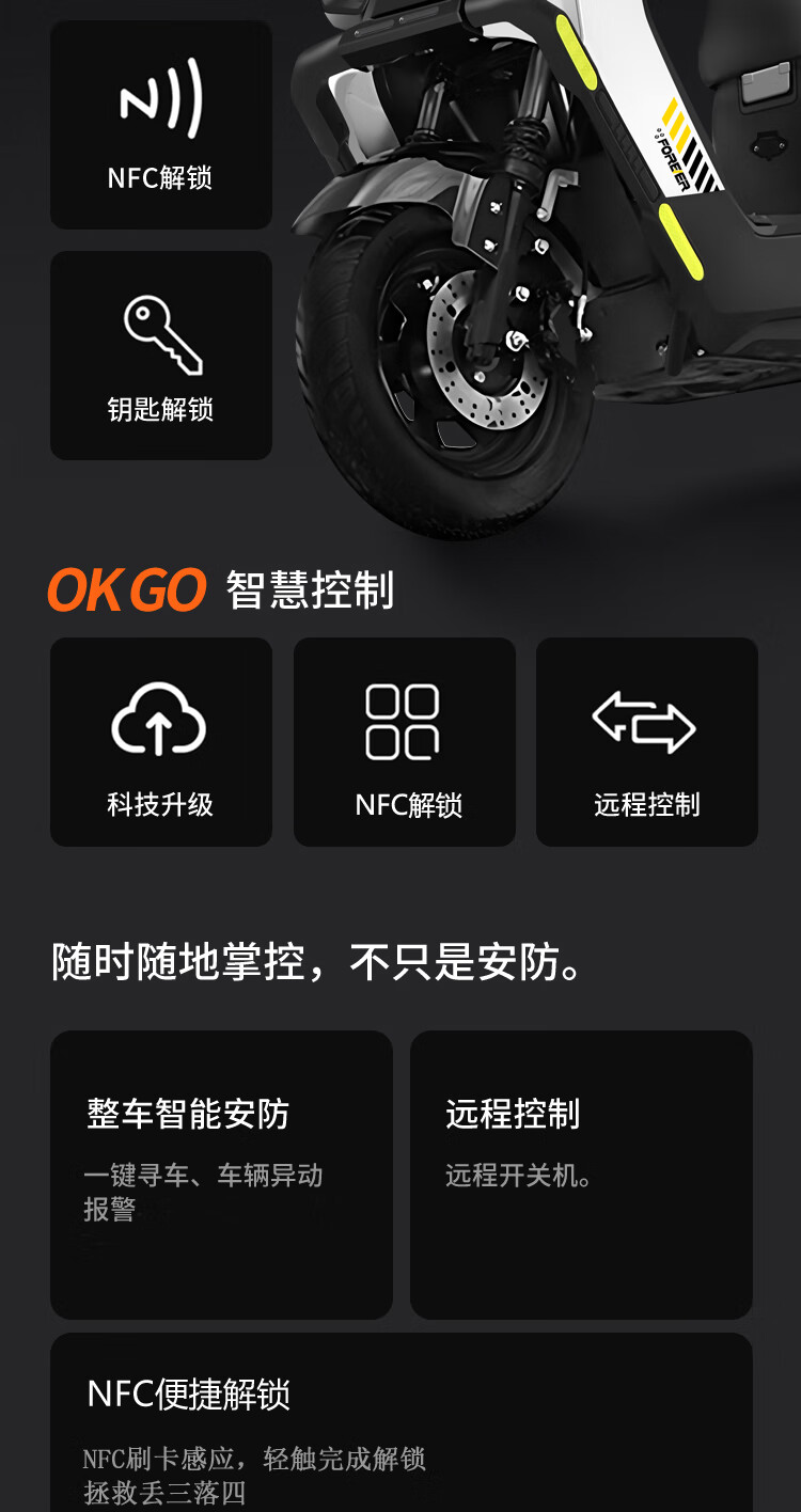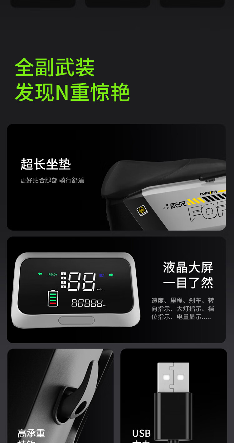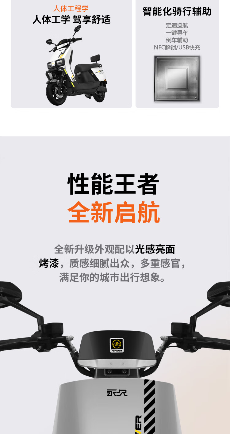 Forever Electric Motorcycle 2025 New 72V Black Gold Graphene Long Range NFC Intelligent Two-Wheeled Electric Motorcycle Black/1200W/Front Disc and Rear Drum 72V20A-6 Large Capacity Brand New Lead Acid